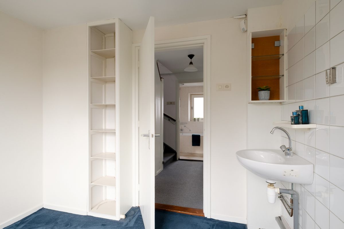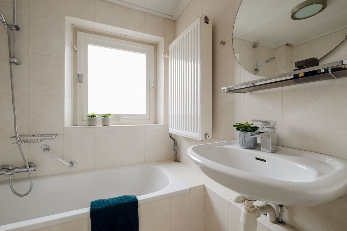 Op de eerste verdieping vind je maar liefst drie ruime slaapkamers, een lichte badkamer met een ligbad, toilet en wastafel. De kamers zijn aangenaam licht en verrassend ruim. De slaapkamer aan de achterzijde van de woning heeft een ruim balkon van maarliefst 11 m2 met een fantastisch uitzicht op de tuin.