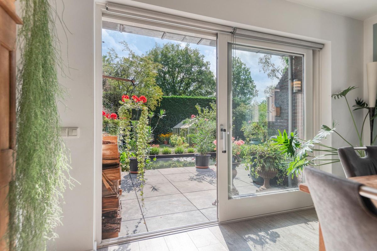Aansluitend vindt u de sfeervolle woonkamer, voorzien van vloerverwarming en openslaande deuren naar de tuin. Dankzij de grote ramen geniet u hier van veel natuurlijk licht en een fijn uitzicht op het groen.