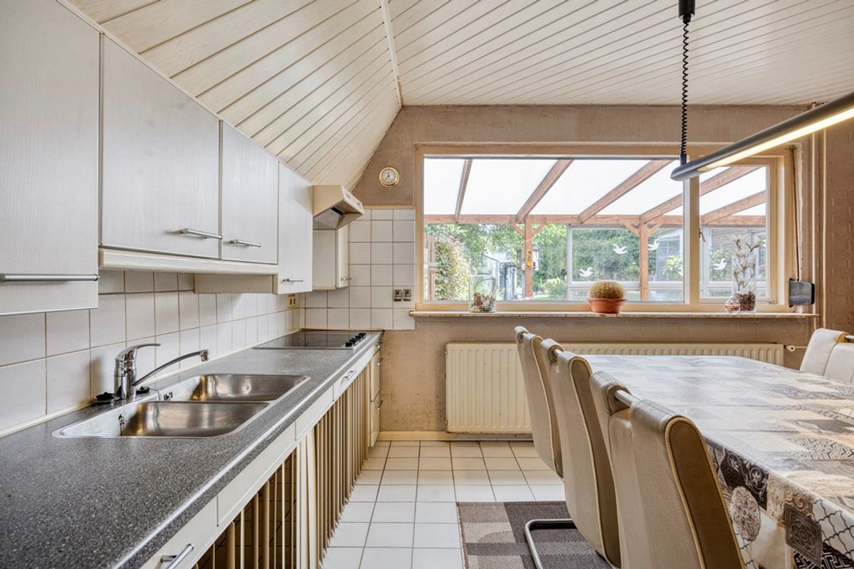 Twee onder een kap woning met aanbouw, vrijstaande garage met bergzolder, riante oprit, een overkapping en een achterom, op perceel groot geschat ca. 340m². De woning staat op een gewilde locatie met veelal vergelijkbare woningen en op loopafstand van het gezellige centrum van Made met alle voorzieningen. De voortuin (zuidwest/ ca. 5m breed en 3m diep) zorgt voor privacy vanaf de straatzijden en de achtertuin (noordoost/ ca. 8m breed en 15m diep). In ca. 1984 is het gehele dak van de woning vervangen door een hogere kapconstructie en is aanbouw aan de zijkant toegevoegd. De woning is geheel in spouw uitgevoerd en heeft deels dubbele beglazing. Indeling woning begane grond o.a.: hal met meterkast, woonkamer met open keuken (totale lengte ca. 10,70m en ca. 4,20m breed), kelder, cv-kast, tussenportaal, toiletruimte en badkamer. Indeling eerste verdieping o.a.: overloop, een 2-tal ruime slaapkamers en bergruimte (of kleine slaapkamer) met aansluiting voor het witgoed. Aan de achterzijde bij het dak een dakkapel. Boven de eerste verdieping is een zolder. Deze is echter niet toegankelijk, maar kan dat wel worden. Ramen zijn hoofdzakelijk van hout m.u.v. voordeur en raam voorzijde woonkamer. De woning heeft op meerdere plaatsen screens. Scholen en een bushalte liggen op loopafstand van de woning. Wil jij wonen op deze fijne locatie, maak dan een afspraak en wij laten jullie deze woning graag zien. Met modernisering van de woning intern, moet rekening worden gehouden. Bouwjaar woning 1984 (herbouwd), inhoud ca. 391,00m³, gebruiksoppervlakte wonen 102,20m² en perceel groot ca. 340m². (Pand nr. 05576)