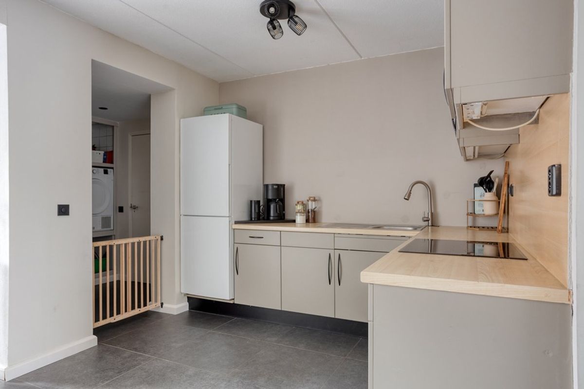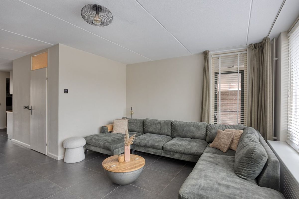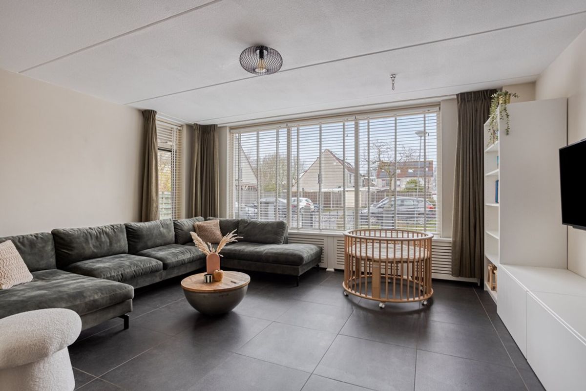 Prachtige grote ruimte! Leuke, lichte zithoek aan de straatzijde. Onder de plavuizen vloer bevindt zich een comfortabele vloerverwarming (gehele begane grond). Naast het brede voorraam is er aan de zijkant ook een raam, fijn voor extra lichtinval. De open trap naar de eerste verdieping is een leuke eyecatcher!