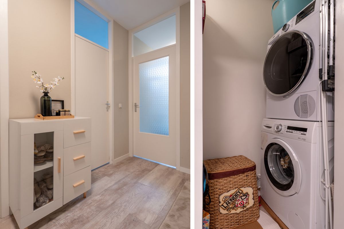 Naast het toilet is een handige bergruimte met de cv-ketel en daarnaast een aparte ruimte met de aansluitingen voor wasmachine en droger. Aan de voorzijde van het complex is er nog een aparte stenen berging van ca. 6,5 m².