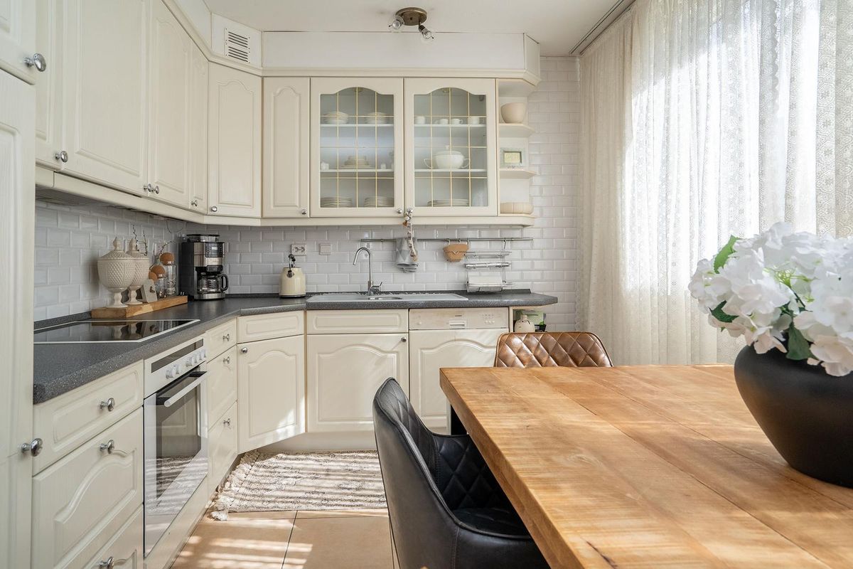 1e verdieping: Overloop, straatgerichte woonkamer met aansluitend de half-open woonkeuken met keurige hoekkeuken.