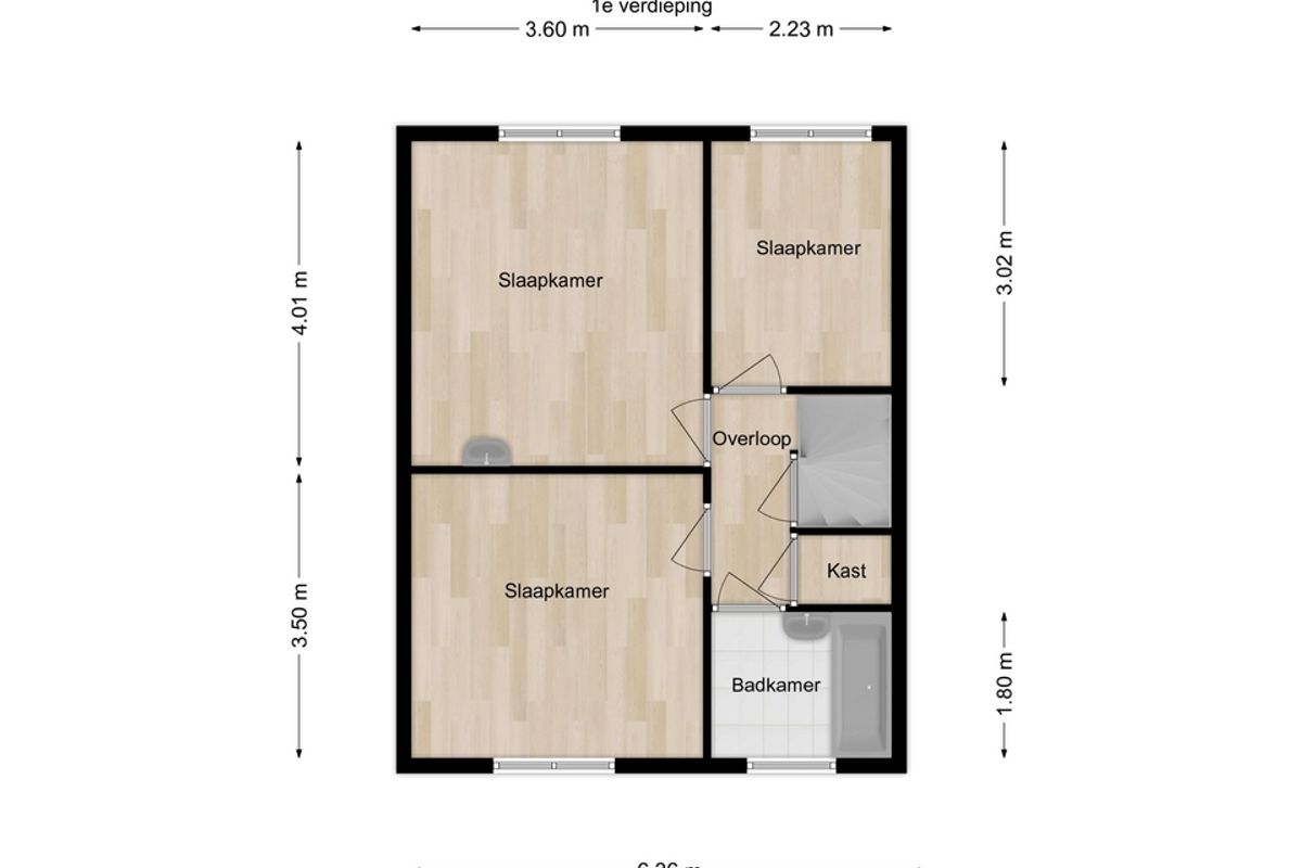 Via een vaste trap bereikbare zolderverdieping met dakraam, overloop en opstelplaats voor de HR-combiketel (Intergas, 2019). Tevens bevindt zich hier een vierde slaapkamer, perfect als werk-, hobby- of logeerkamer.