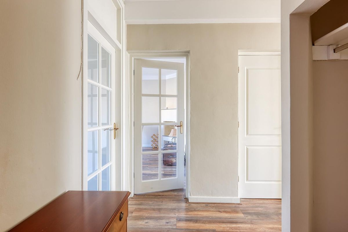 De woning heeft een L-vormige hal met garderobe, die toegang biedt tot alle vertrekken. De lichte, ruime woonkamer geniet dankzij de grote raampartijen van veel natuurlijk licht en biedt een fraai uitzicht over het water en groen. De woonkamer is eenvoudig in 2 kamers te verdelen waardoor er een studeerkamer/slaapkamer kan ontstaan.