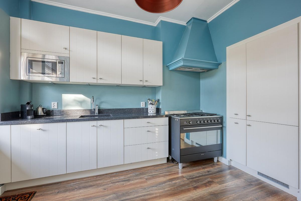 Aan de achterzijde bevindt zich de royale eetkeuken, uitgerust met een groot gasfornuis met oven (SMEG), koel-vriescombinatie (Siemens), magnetron (Etna) en vaatwasser (Siemens). De keuken biedt voldoende ruimte voor een grote eettafel en geeft toegang tot het zonnige balkon op het zuiden.