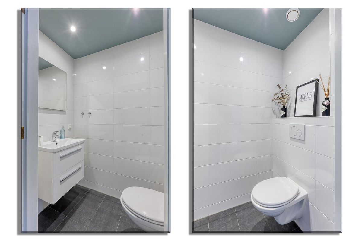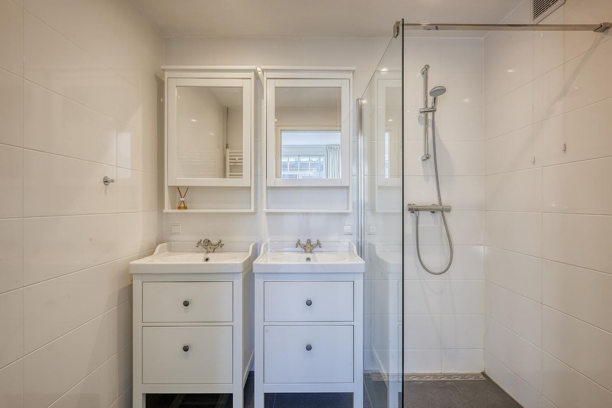 De grote slaapkamer beschikt over twee vaste kasten en een en-suite badkamer met een ruime inloopdouche, dubbele wastafels met meubel en een handdoekradiator. Vanuit de slaapkamer is er eveneens toegang tot het balkon. Separaat toilet met fonteintje. Het appartement beschikt verder over een praktische berging met aansluiting voor de wasmachine en een CV-ketel.