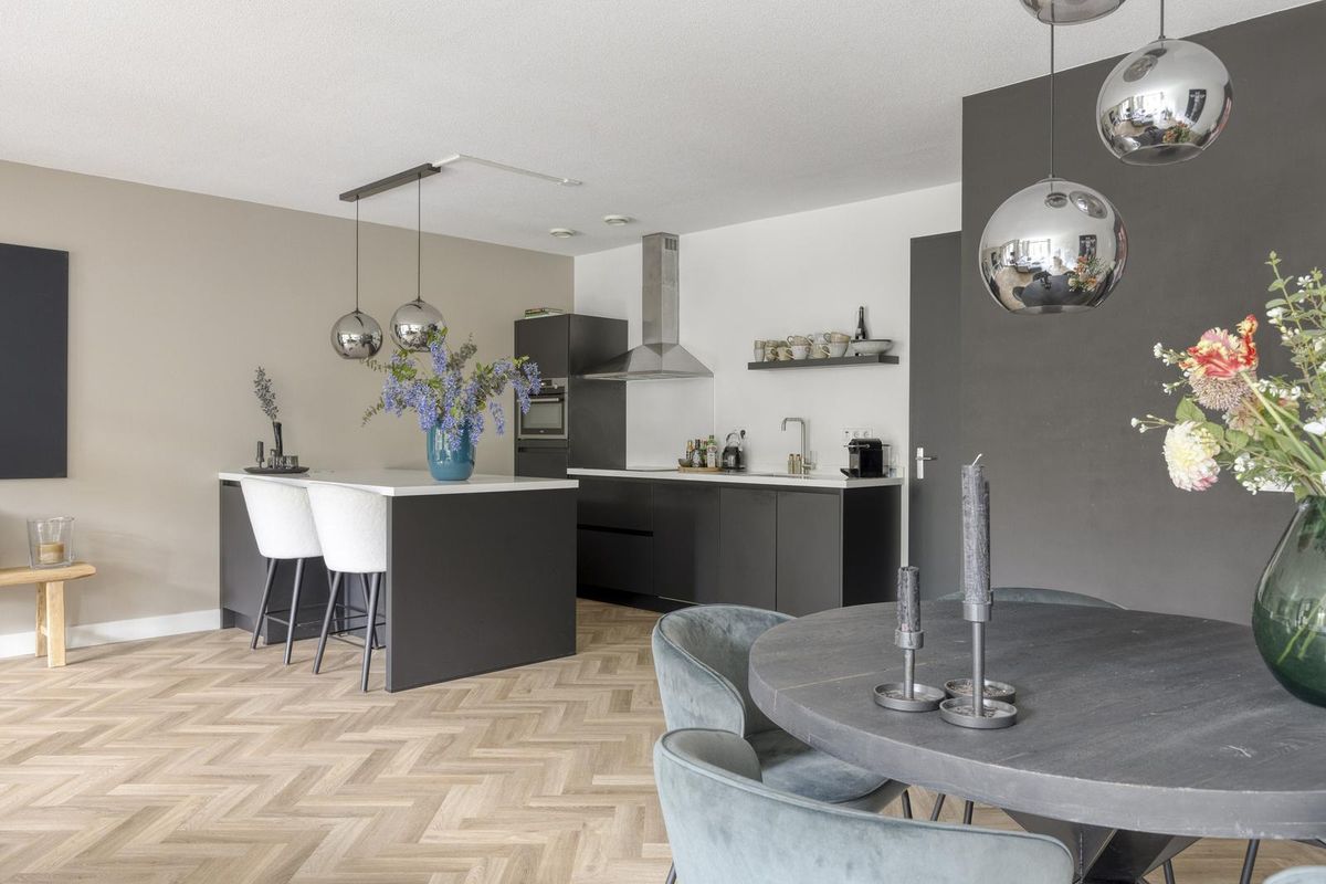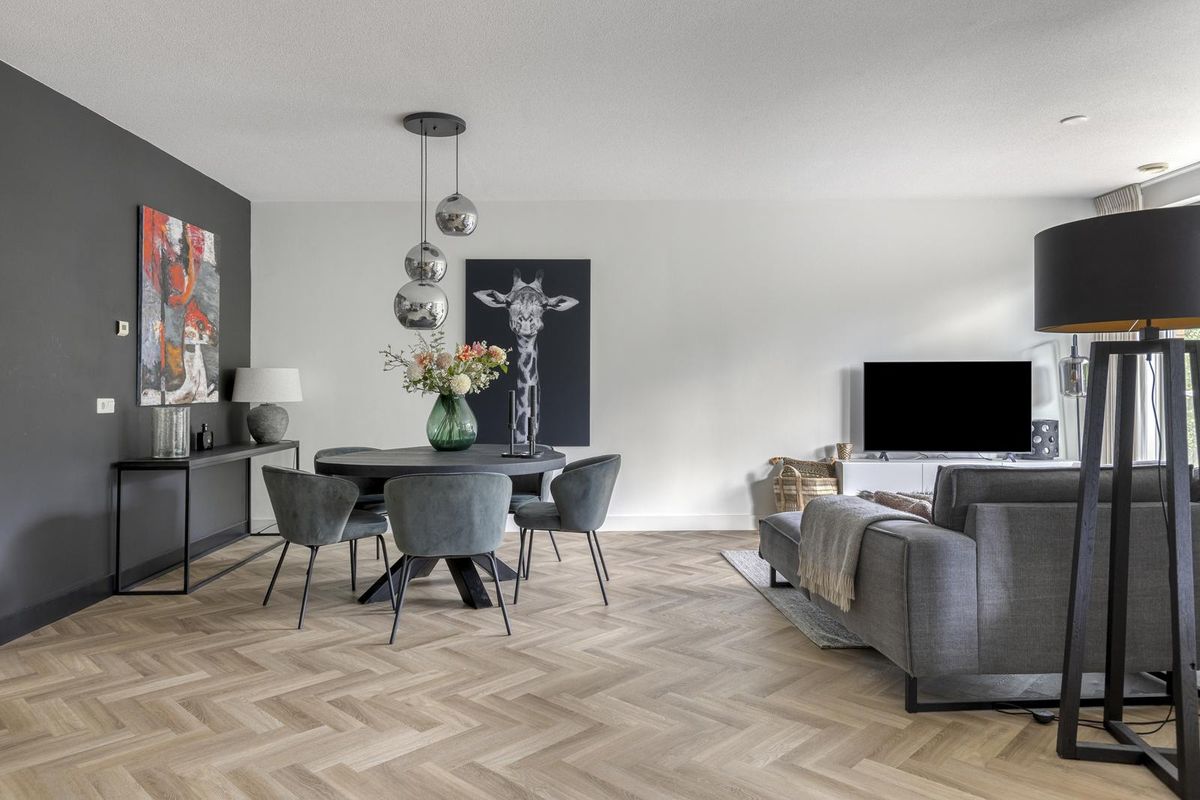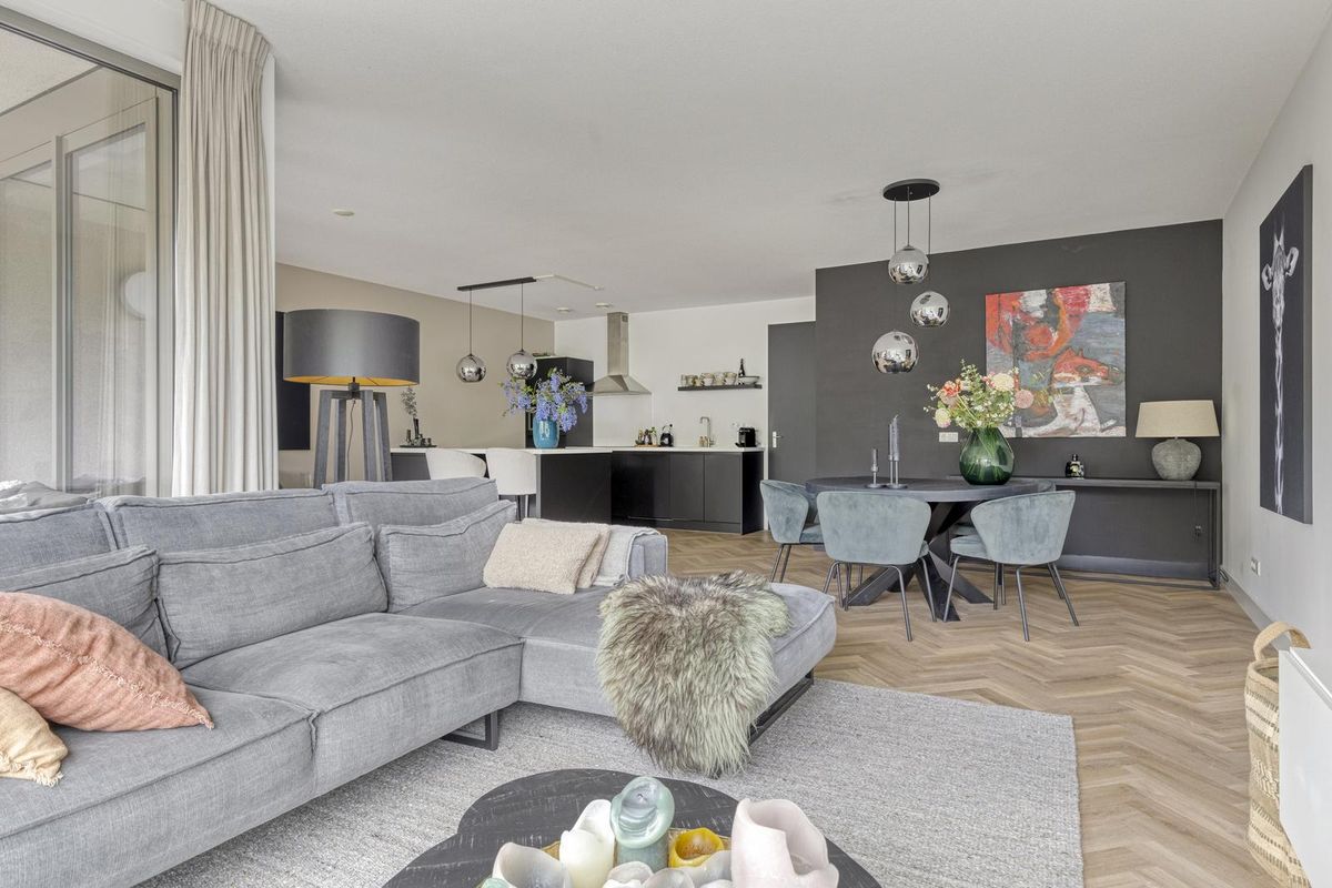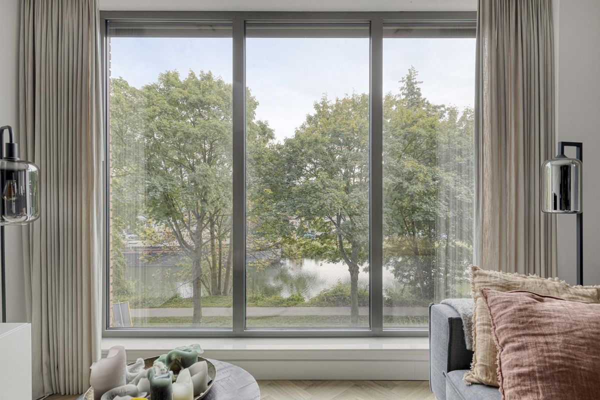 De lichte woonkamer is royaal opgezet en biedt volop ruimte voor een gezellige zithoek en een grote eettafel. Dankzij de grote raampartijen geniet u hier de hele dag van natuurlijk licht. Vanuit de woonkamer stapt u direct het balkon op, een heerlijke plek om te ontspannen met uitzicht op de Piushaven.
