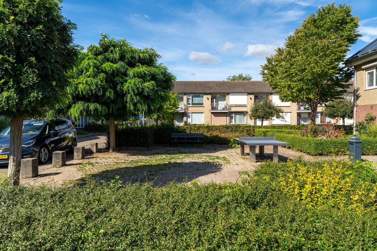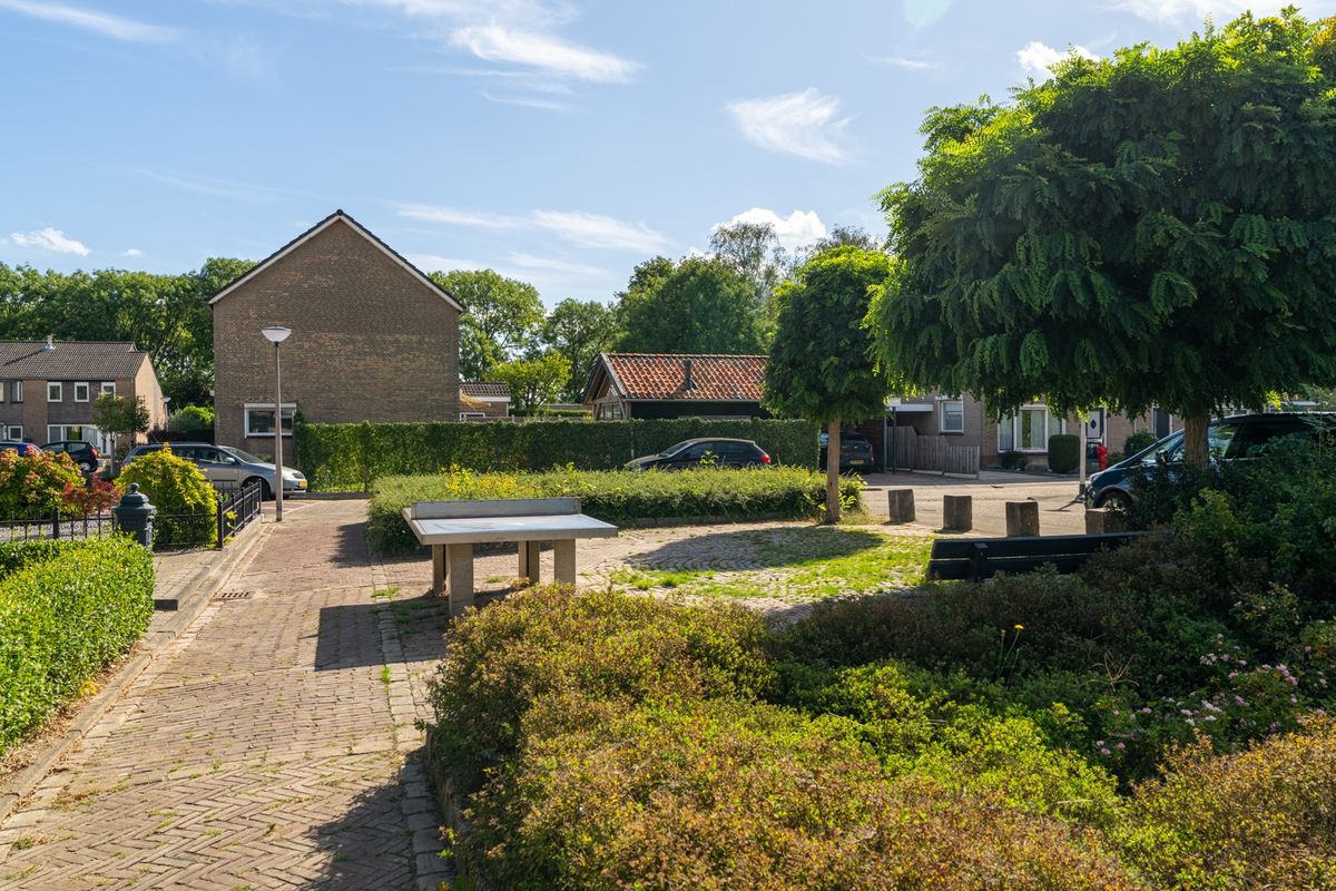De voortuin is praktisch ingedeeld met bestrating en grindborder met vaste beplanting. Voor de garage bevindt zich de ruime oprit geschikt voor meerdere auto’s. De omsloten achtertuin met berging en sfeervolle veranda is gelegen op het zuiden en is onderhoudsvriendelijk ingedeeld met sierbestrating, gazon en beplanting. Tevens is er een afsluitbare achterom. In de straat is er voldoende parkeergelegenheid aanwezig.