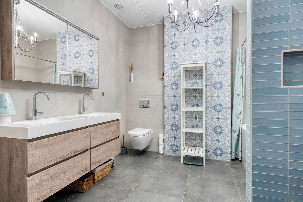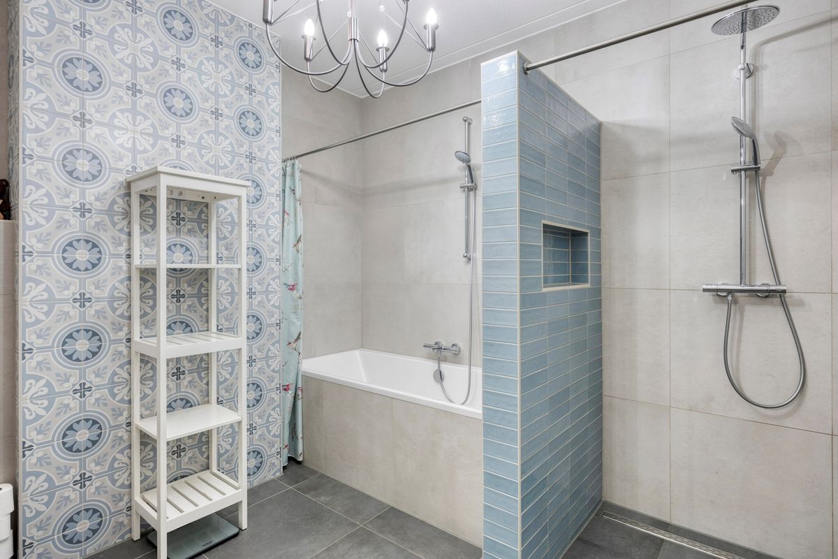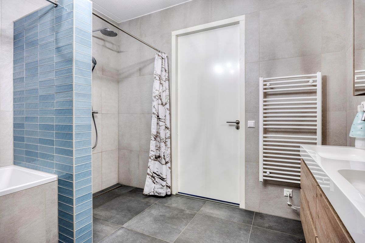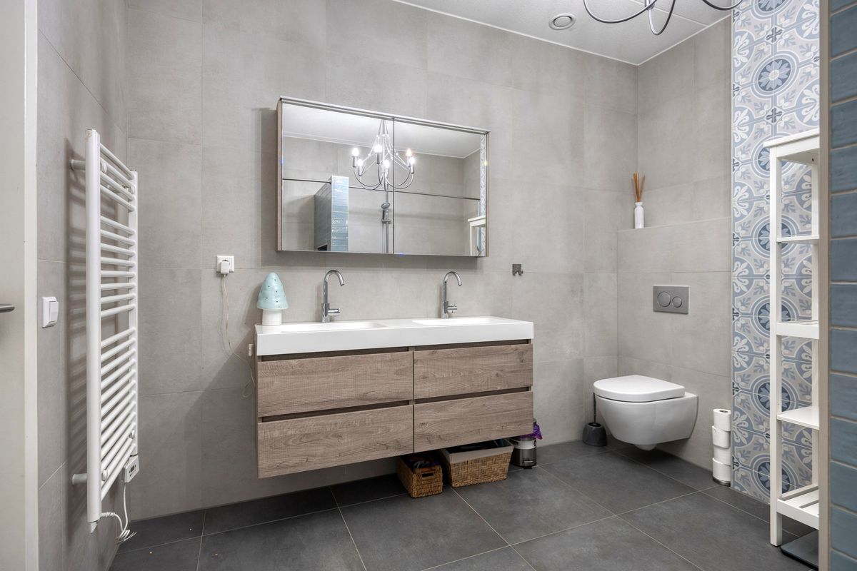 De luxe badkamer beschikt over een ruime inloopdouche, een ligbad, een tweede toilet en een dubbele wastafel.. Daarnaast is er een separaat toilet naast de voordeur. Verder beschikt het appartement over een aparte wasruimte en een technische ruimte.