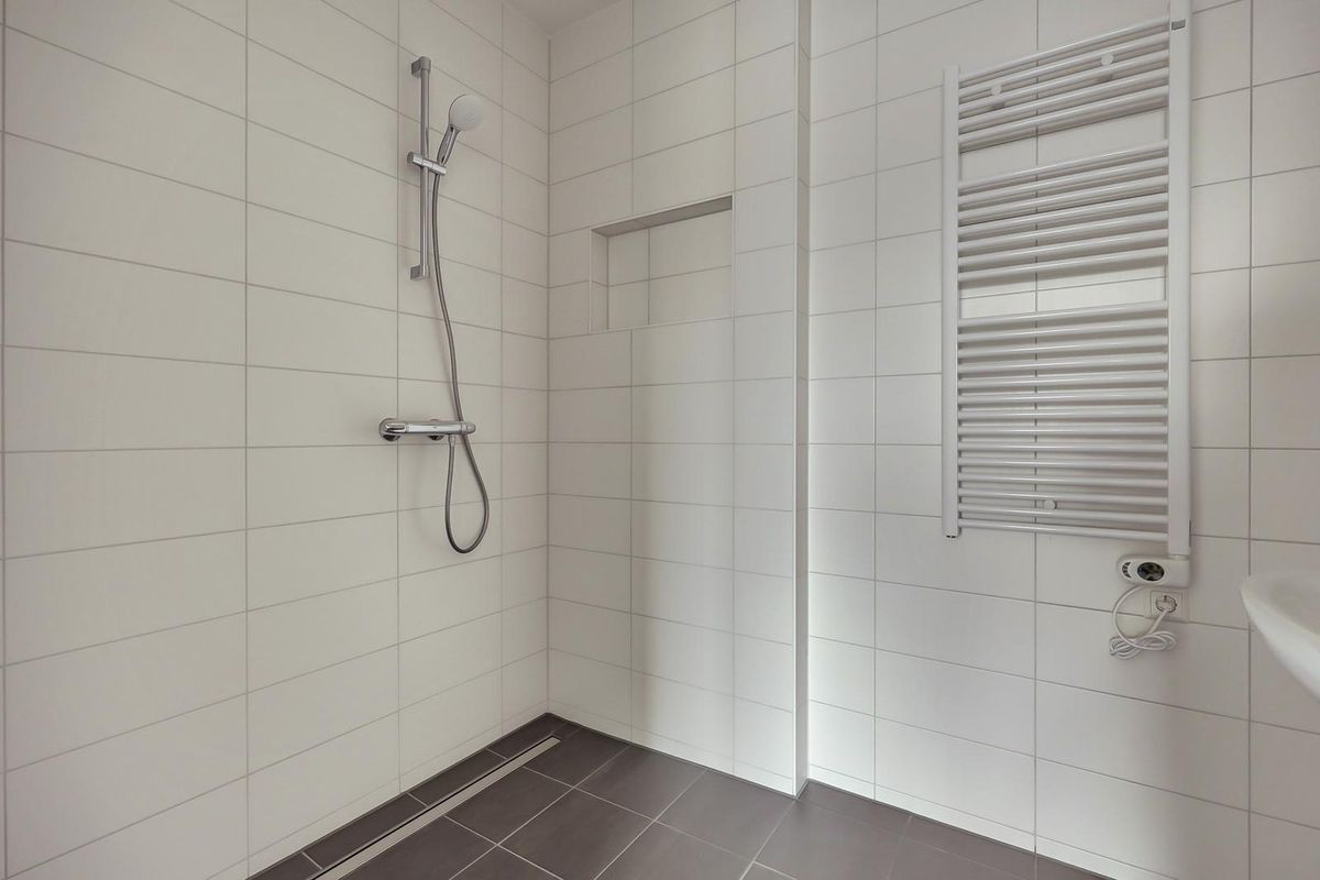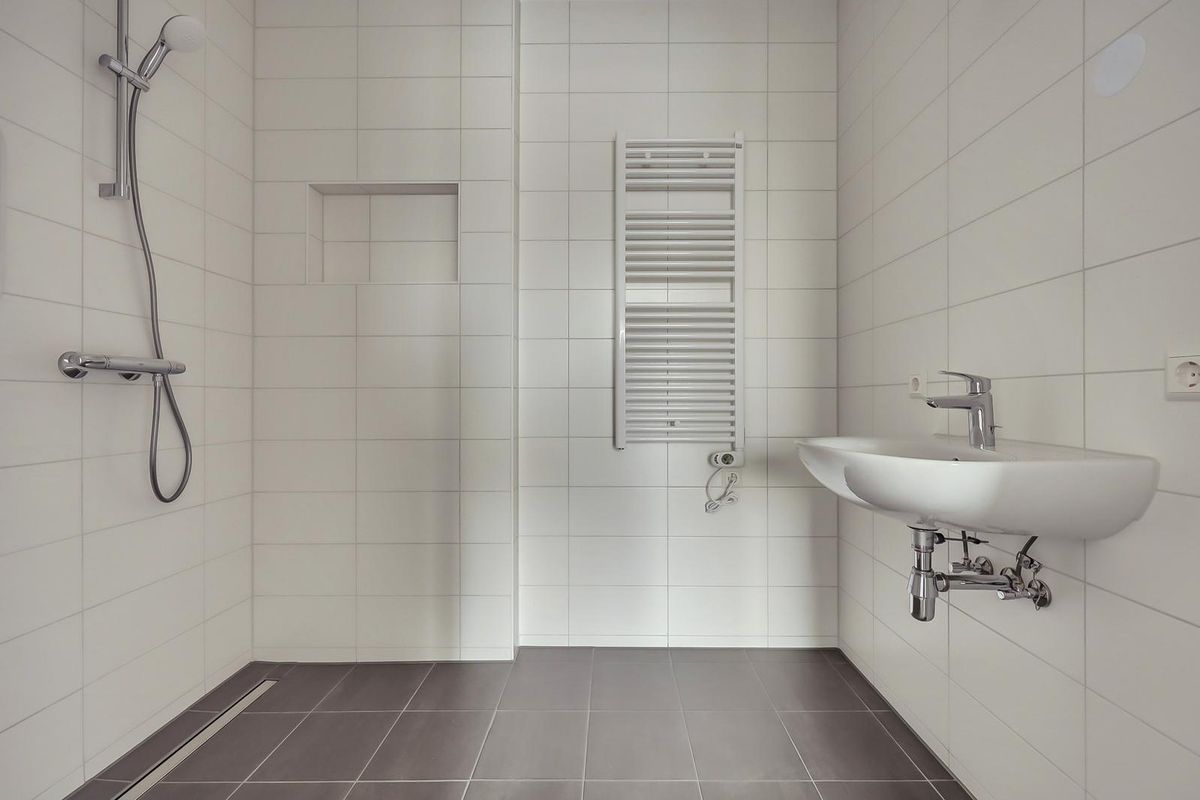 De badkamer is volledig betegeld en voorzien van een inloopdouche, wastafel en designradiator. De ruimte oogt fris en modern. Daarnaast is er een apart toilet in de hal, wat extra comfort biedt.