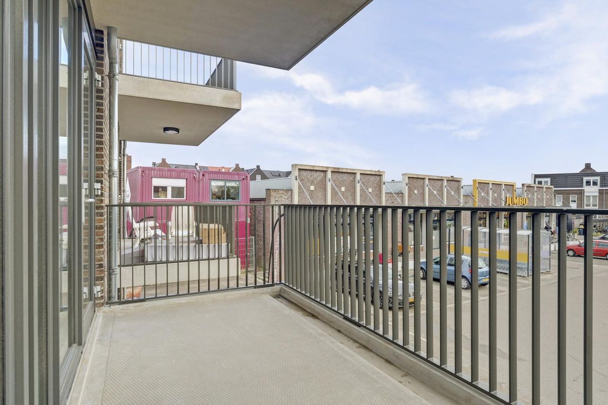 Het balkon ligt aan de voorzijde van het gebouw en biedt uitzicht op het Havenplein. Dankzij de openslaande deuren vormt het balkon een verlengde van de woonkamer.