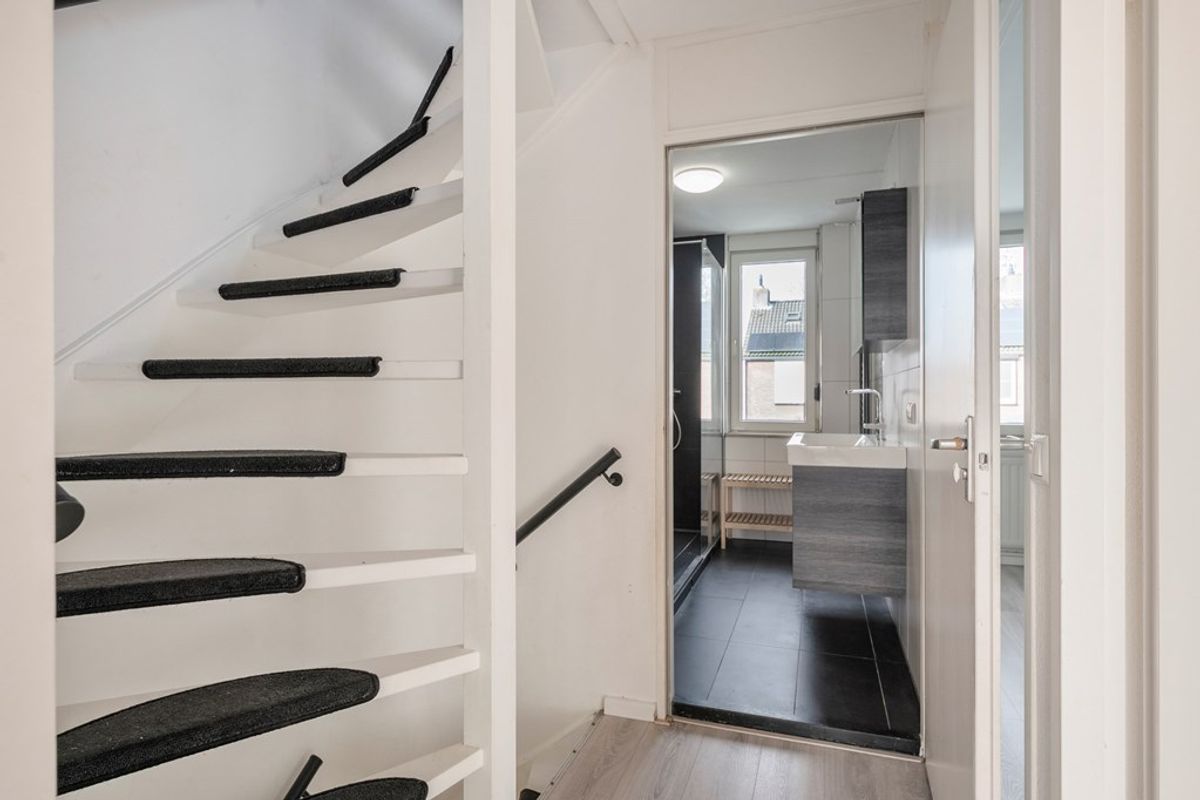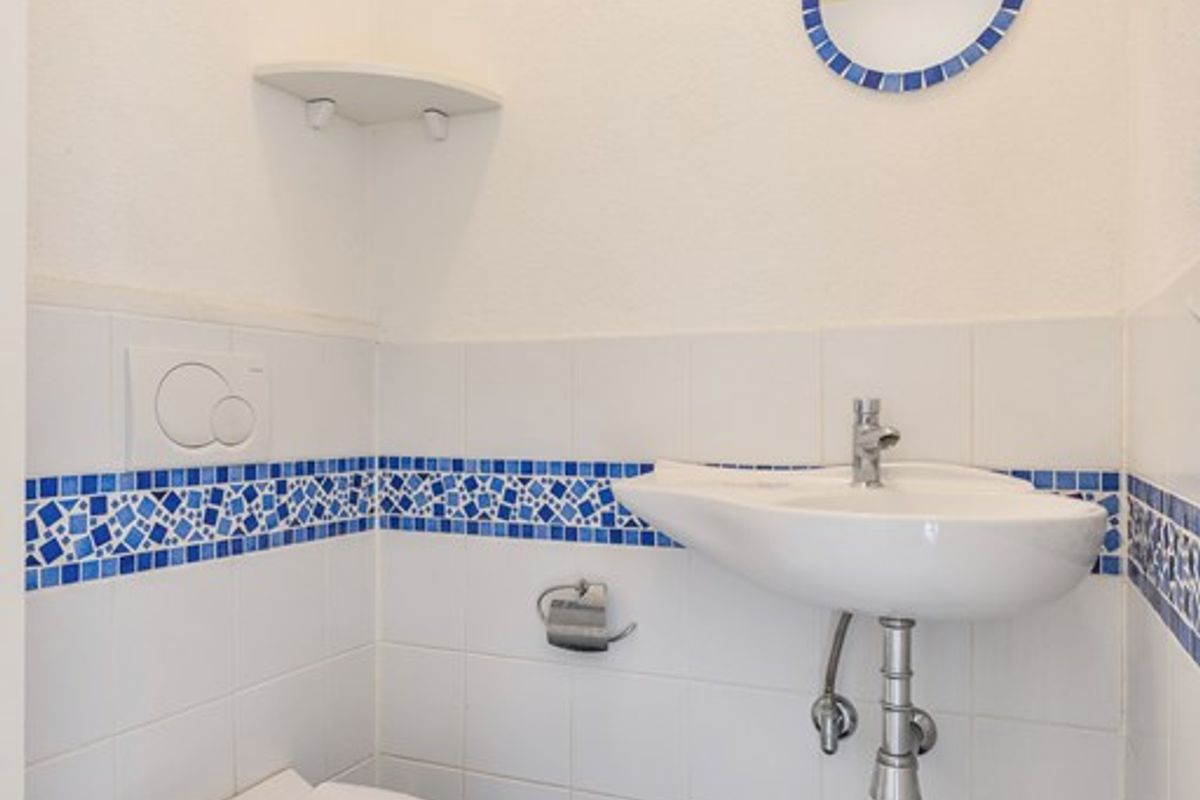 Middels een tussenportaal is het toilet bereikbaar en de trapopgang naar de 1e verdieping.