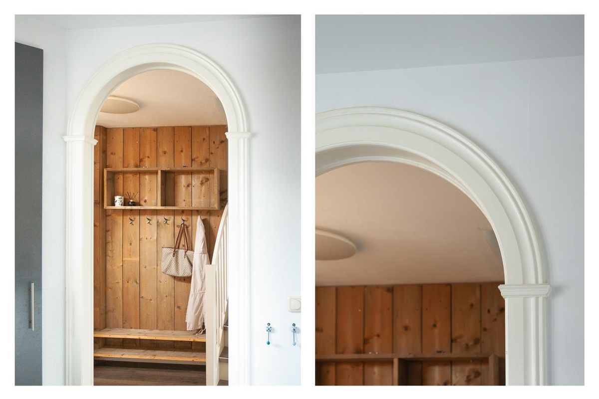 Aan de buitenzijde zie je niet alleen de voordeur, maar ook de deur naar een handige berging. Hier kunnen de fietsen staan en er is een bergvliering gemaakt, waardoor de ruimte optimaal benut kan worden.