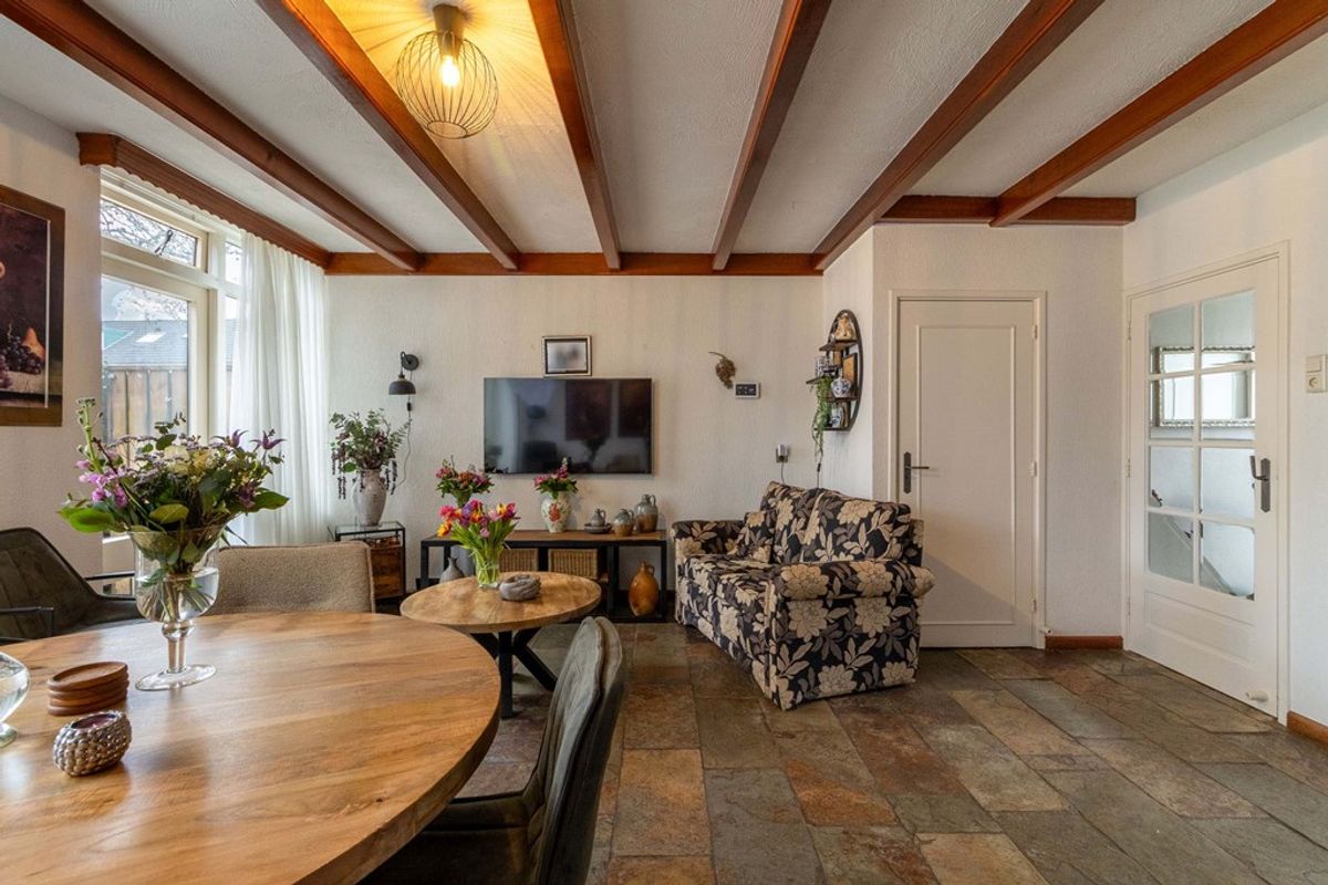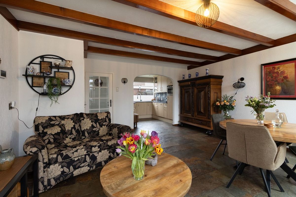 De woonkamer is ruim opgezet en strekt zich uit over vrijwel de gehele diepte van de woning. Dankzij de grote raampartijen aan zowel de voor- als achterzijde geniet de ruimte van veel natuurlijke lichtinval. De indeling biedt volop mogelijkheden voor het creëren van een comfortabele zit- en eethoek.