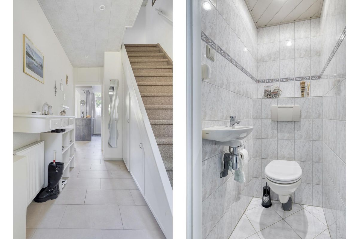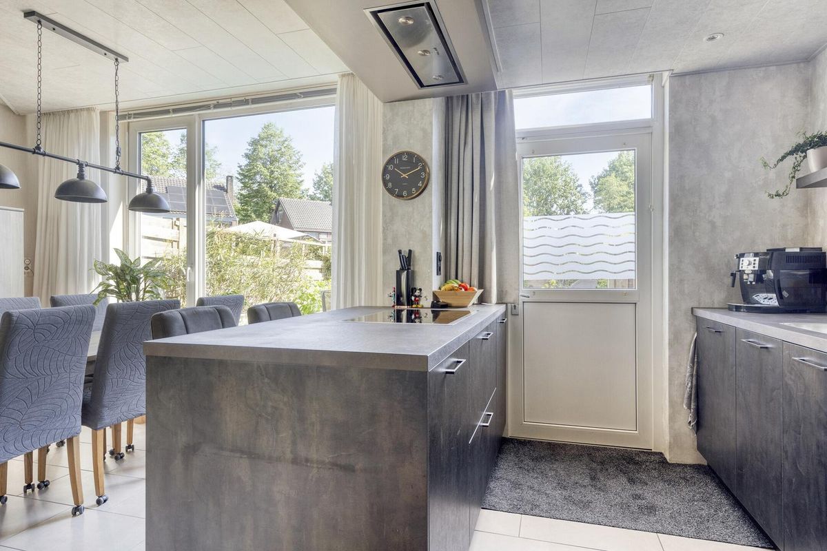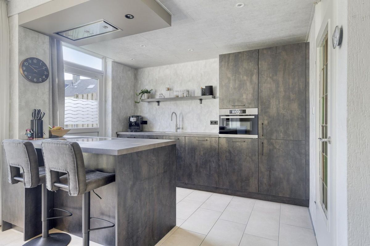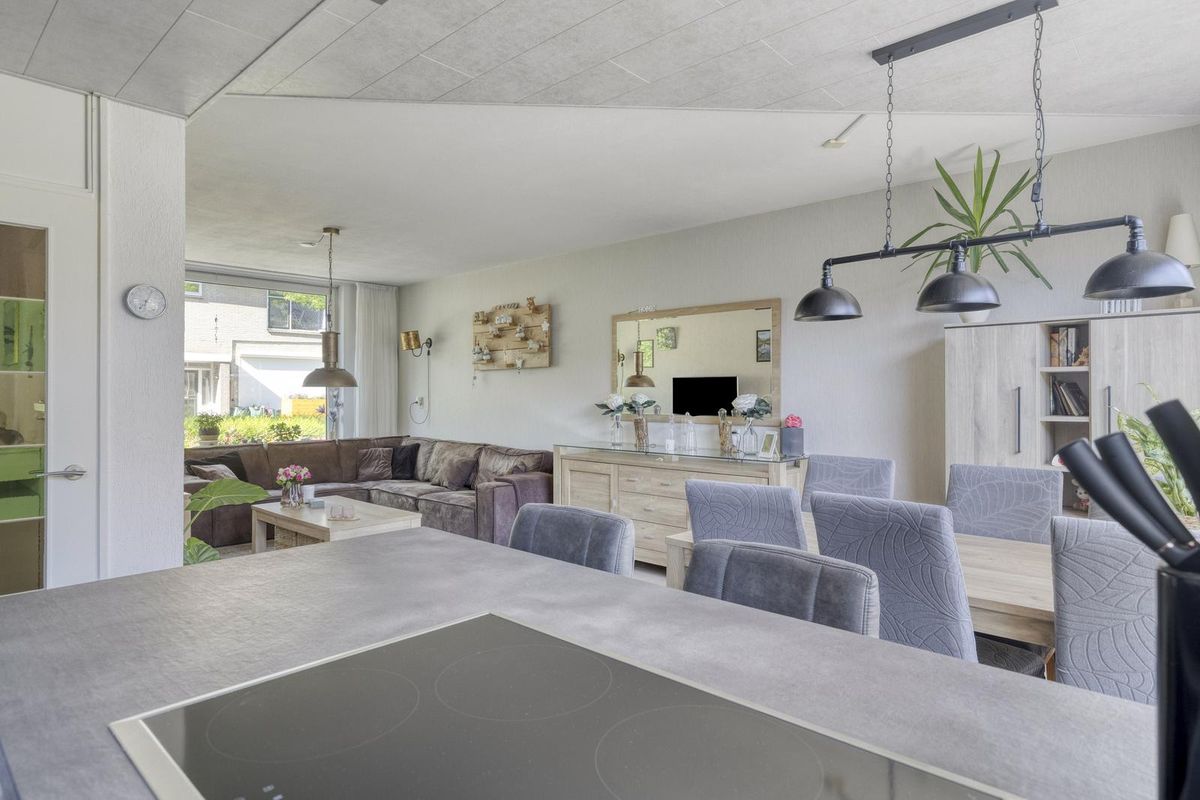 Stap na de overdekte entree binnen in de ruime hal, waar plek is voor de kapstok, vernieuwde meterkast, handige trapkast, toiletruimte met zwevend toilet en trapopgang naar de eerste verdieping. Via de tussendeur kom je in de keuken met aansluitend de living en deze is heerlijk ruim. Grote ramen en een mooie vloer. De recent geplaatste keuken heeft een wandopstelling met kookeiland en is verder voorzien van een spoelbak, een koel-vriescombinatie, combi-oven, inductiekookplaat met afzuiging, vaatwasser, Quooker en voldoende opberglades.