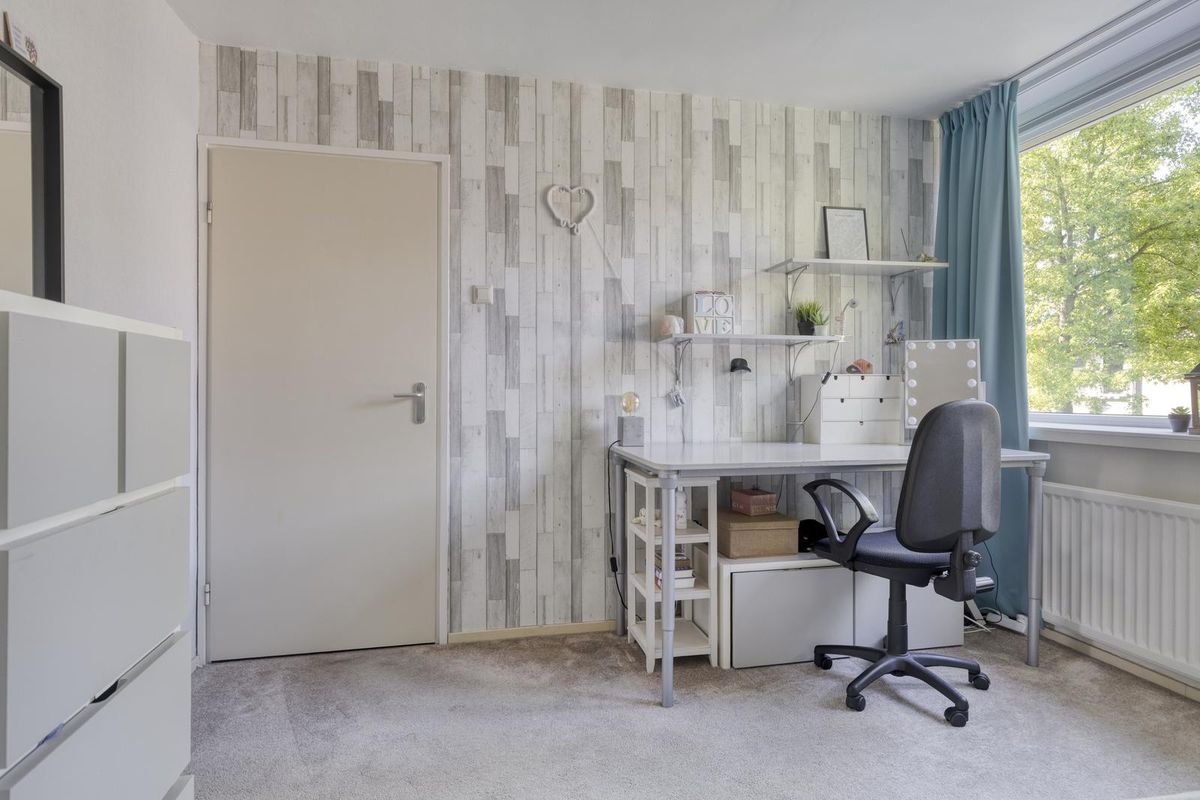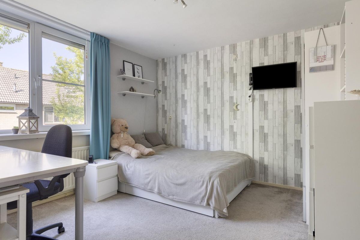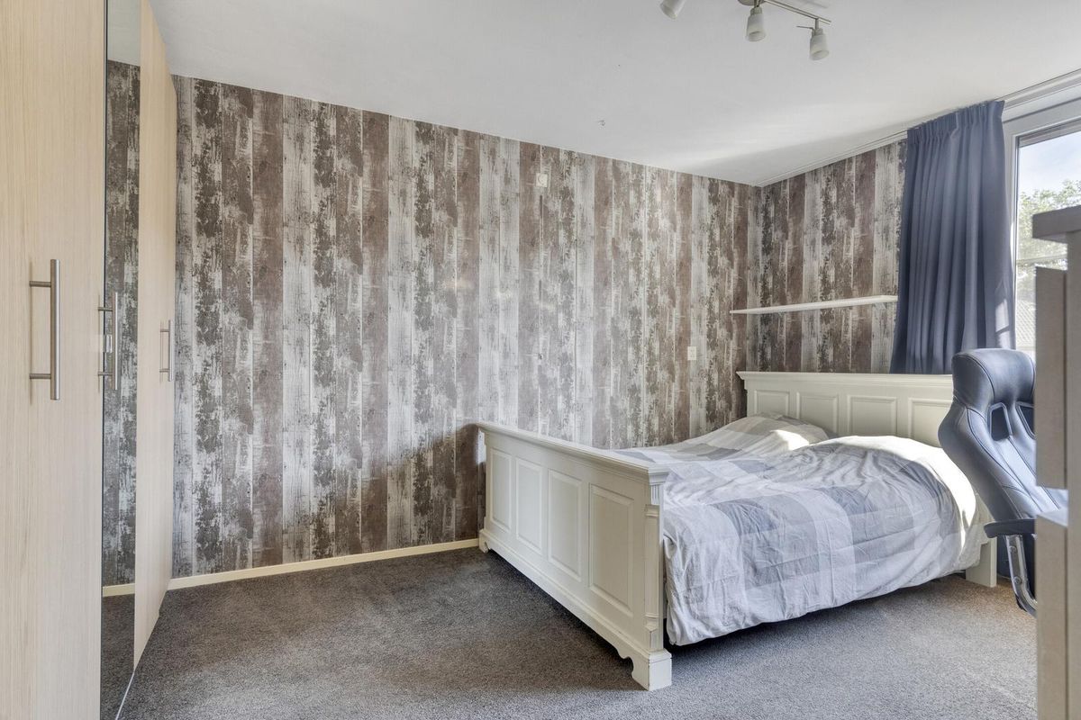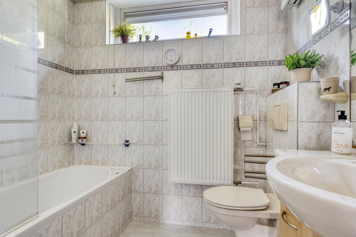 Via de trap in de hal bereik je de eerste verdieping. Vanaf de overloop heb je toegang tot drie slaapkamers en de badkamer. Aan de achterzijde van de woning vind je twee slaapkamers. De eerste is fijn van formaat. De tweede slaapkamer is de master bedroom en voelt heerlijk ruim aan. De derde slaapkamer ligt aan de voorzijde van de woning. De badkamer is geheel betegeld en ingericht met een ligbad, toilet en een wastafelmeubel met spiegel. Er is een raampje voor daglicht en frisse lucht.