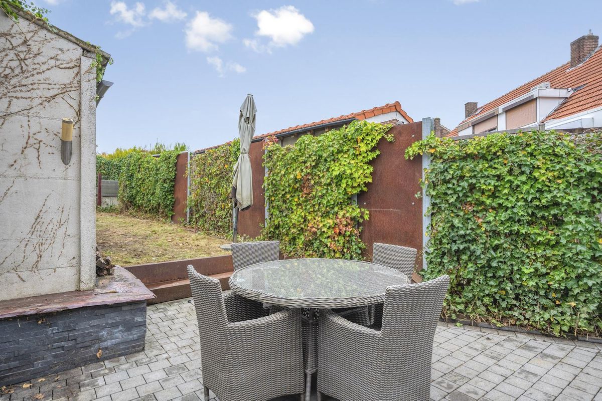 De achtertuin ligt op het westen, heeft twee fijne terrassen en een vrije achterom.