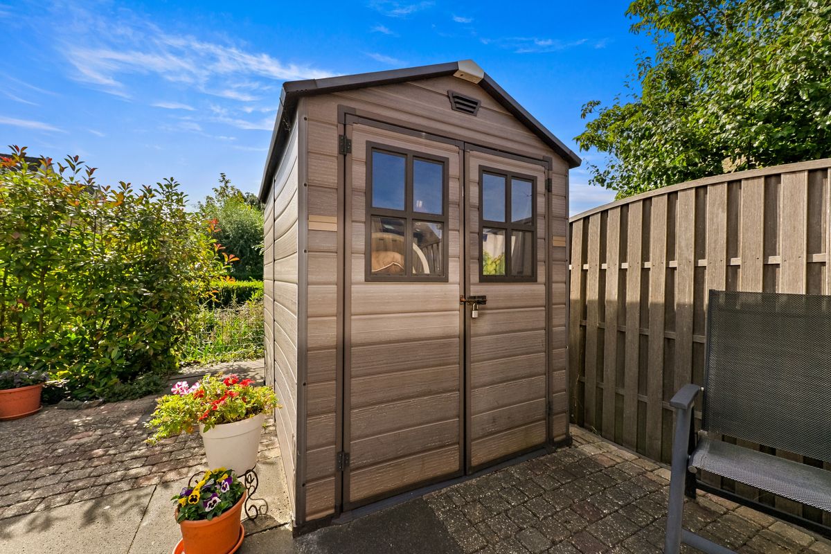 Aan de voorzijde van de woning komen we via de fraai aangelegde voortuin bij de woning. Ook is hier toegang tot de aangebouwde berging. Lichte hal met gemoderniseerde meterkast, geheel betegeld toilet met fonteintje, trap naar verdieping en praktische trapkast waar de verdeler van de vloerverwarming zich bevindt. De woonkamer met airconditioning is een hele fijne en sfeervolle ruimte met veel lichtinval. De fraaie eiken vloerdelen benadrukken de lengte van het huis. De strak gestucte wanden en plafonds maken het geheel af. Aan de achterzijde van de woning is een aanbouw met extra zijraam geplaatst. Via de dubbele deuren is de fraai aangelegde achtertuin te bereiken, welke grenst aan water. De achtertuin is dankzij de hoekligging breder als bij de tussengelegen woningen. Via een deur aan de zijkant wordt de achtertuin ontsloten naar het Heemraad. Aan de voorzijde van de woning is de ruim opgezette, moderne woonkeuken (2022) opgesteld in een zogenaamde parallel opstelling. Aan de linkerzijde bevindt zich het kook- en spoelgedeelte met een inductiekookplaat met werkbladafzuiging, de vaatwasser en Quooker kraan. Aan de andere zijde is een hoge kastenwand met koelkast, oven, magnetron en koffiecorner geplaatst. De keuken staat in rechtstreekse verbinding met de eettafel en vormt daardoor een extra fijne plek. De berging aan de voorzijde is zowel van buitenaf als vanuit de woning bereikbaar, waardoor de berging functioneert als praktische bijkeuken.