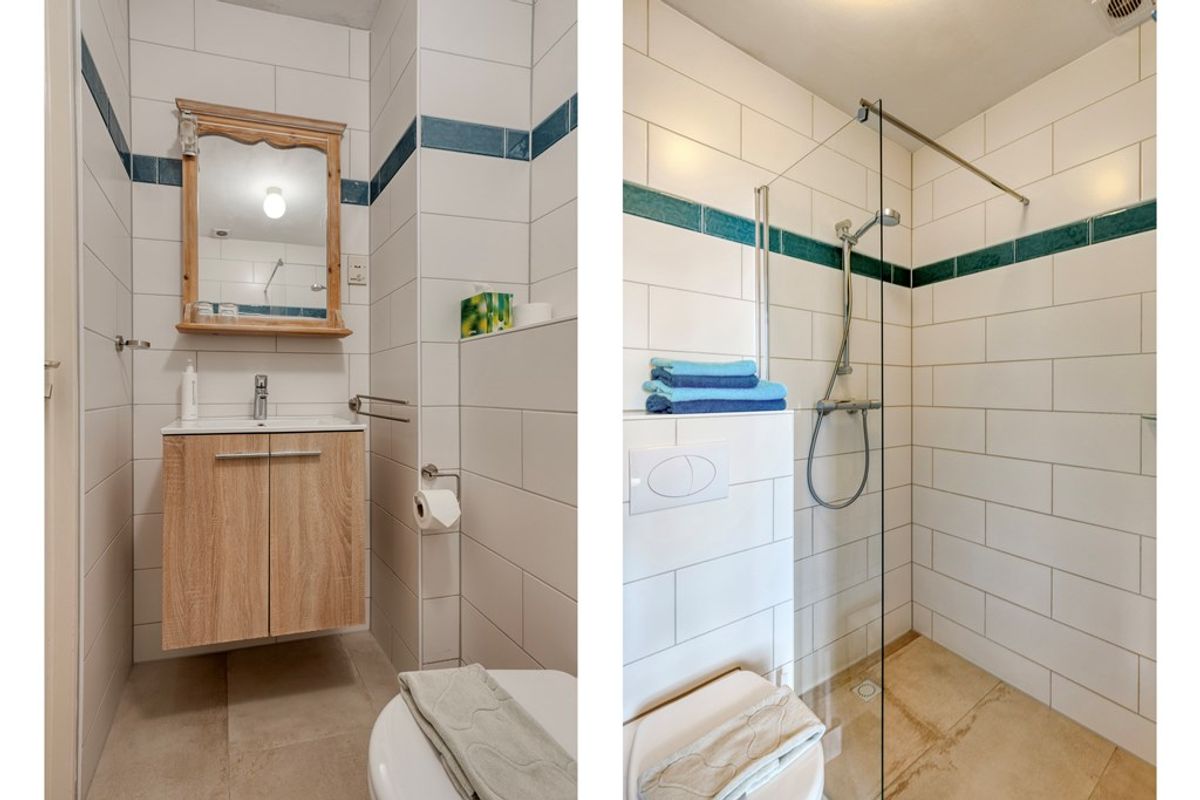 inloopdouche, wastafel en toilet.