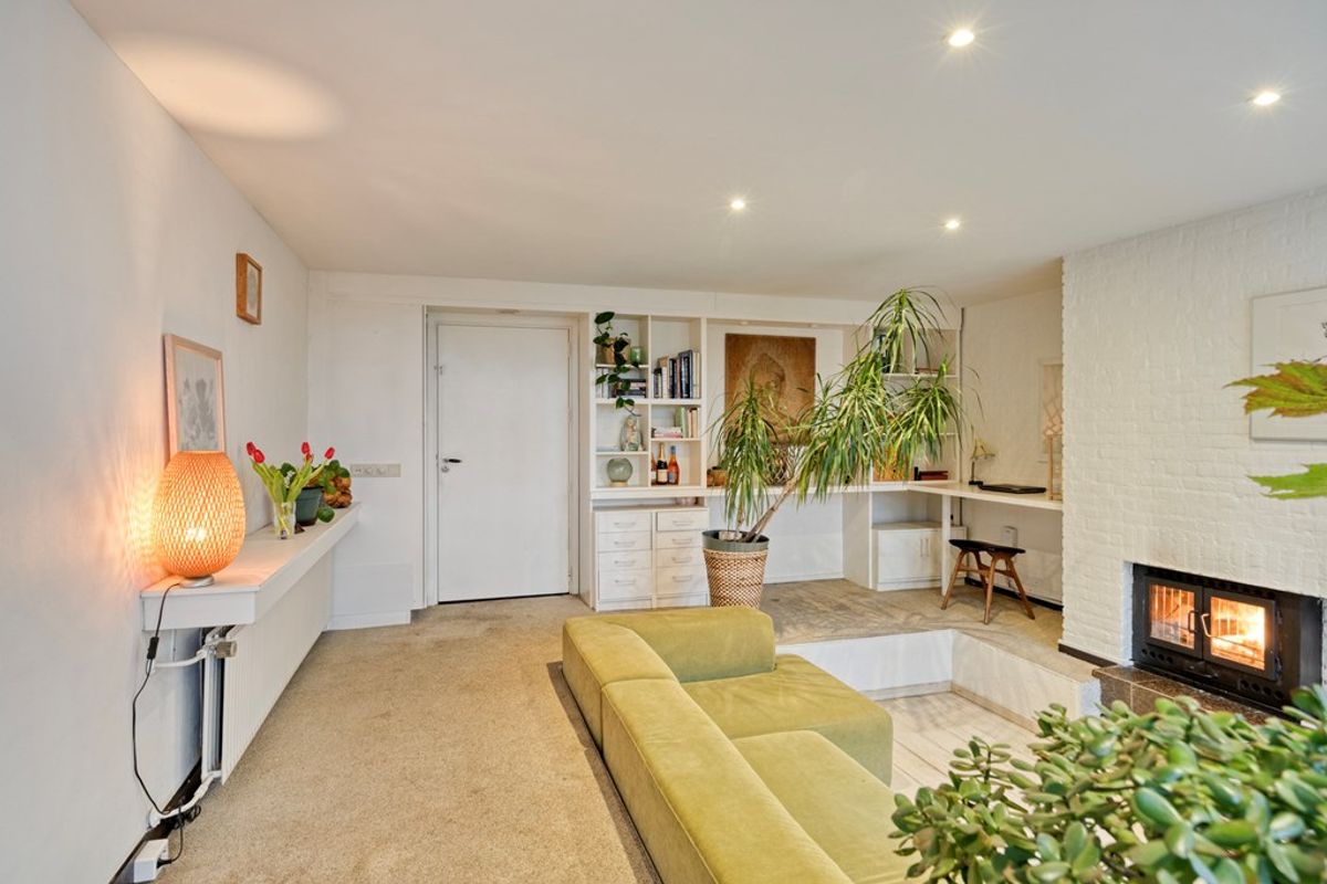 Zodra je het appartement binnenstapt, word je verrast door de speelse woonkamer. De verdiepte