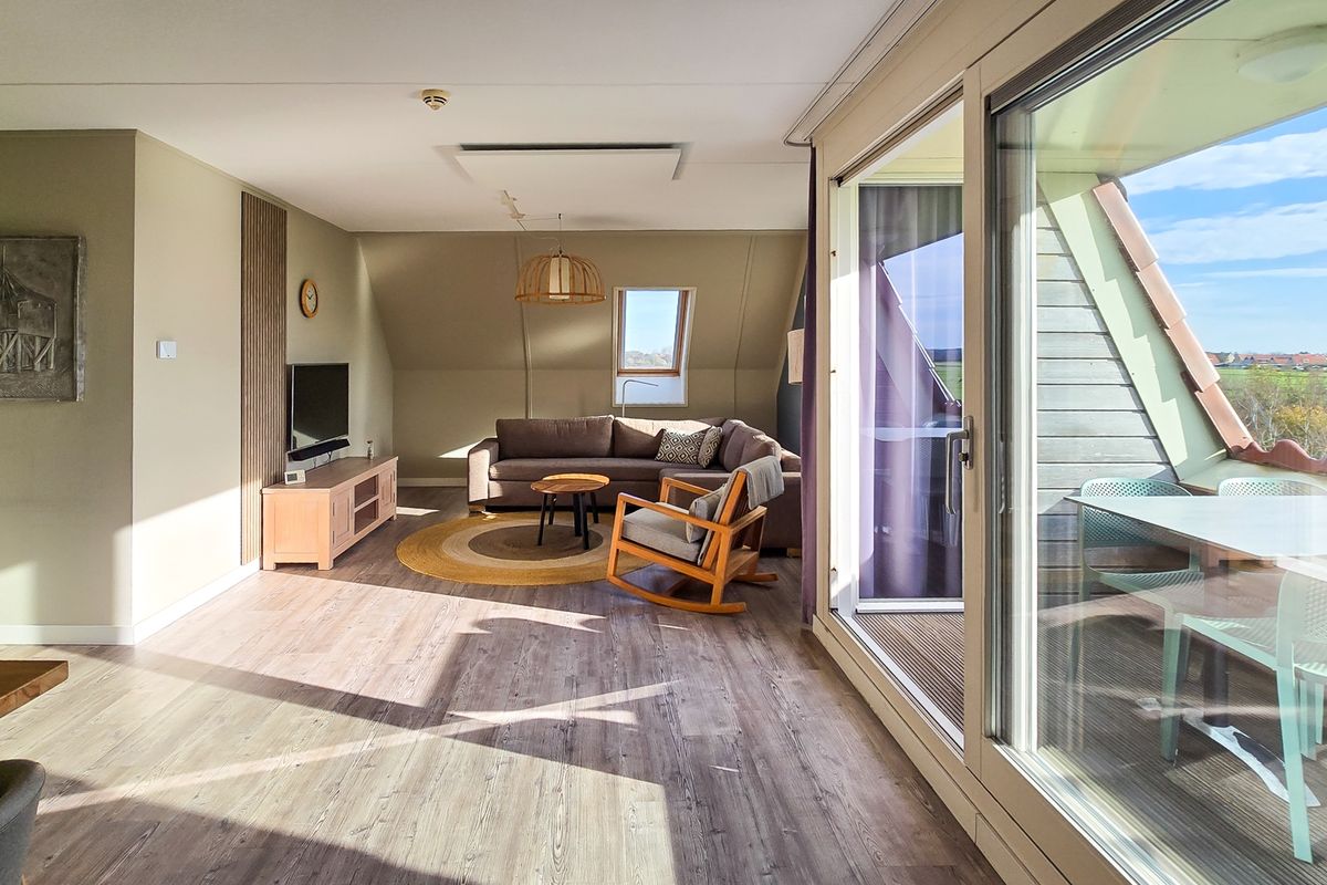 TE KOOP: Uniek 4-persoons appartement in Résidence Terschelling met prachtig uitzicht over het polderlandschap en het dorpje Midsland.