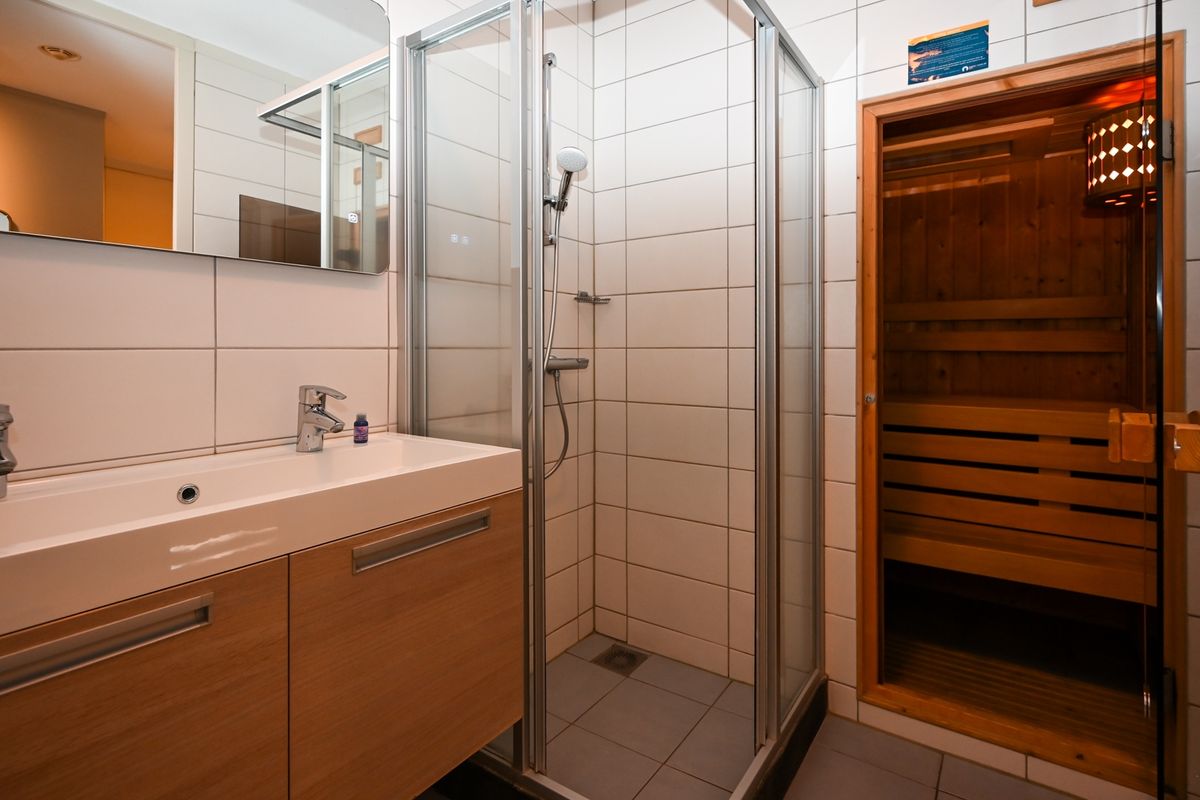 Dit appartement valt direct op door de royale indeling en de bijzondere ligging in Résidence Terschelling. De vele dakramen en de schuifpui naar de loggia gelegen op het zuiden zorgen voor een prachtig lichte woonkamer met eethoek, waar het daglicht vrij spel heeft. De woonkamer staat in verbinding met de open keuken, die is voorzien van alle hedendaagse gemakken. Appartement 38 beschikt over twee ruime tweepersoonsslaapkamers, beide met dubbele dakramen die eveneens zorgen voor veel daglicht en frisse lucht. De badkamer is ingericht met een inloopdouche, ligbad, wastafel en een eigen Finse sauna. De op het zuiden gelegen loggia is dankzij haar gunstige ligging een bijzonder fijne plek om in alle rust te genieten van de middagzon en het schilderachtige uitzicht over de polder, Midsland en zelfs de Brandaris. In de kelder van het complex bevindt zich bovendien een privéberging, ideaal voor het stallen van fietsen of het opbergen van persoonlijke spullen die u met een gerust hart kunt achterlaten.