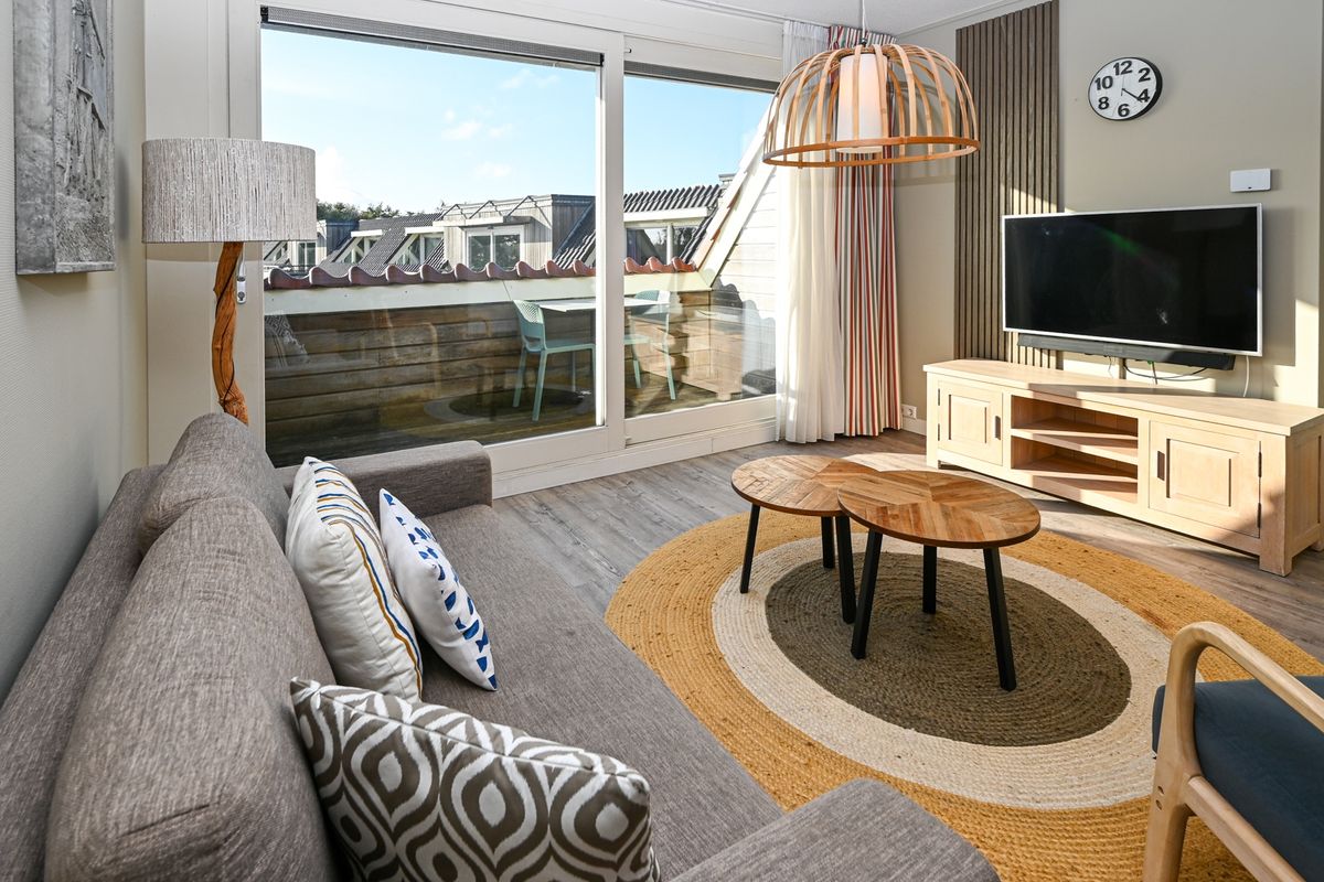 Het appartement is gelegen op de bovenste verdieping. Bij binnenkomst valt direct de lichte, open woonkamer op vanwege de ruime schuifpui naar het balkon. De woonkamer sluit aan op een moderne open keuken, voorzien van alle gemakken. De ruime slaapkamer met dakramen biedt plaats aan twee personen en beschikt daarbij over een televisie en kastruimte. De badkamer is uitgerust met een inloopdouche, een ligbad en een ruime Finse sauna. Daarnaast beschikt het appartement over een separaat toilet en een zonnig balkon op het zuid-westen, waar u in alle rust kunt genieten van de middagzon en het uitzicht over het eiland. In de kelder van het complex bevindt zich een privéberging, ideaal voor het stallen van fietsen en het opbergen van persoonlijke spullen.
