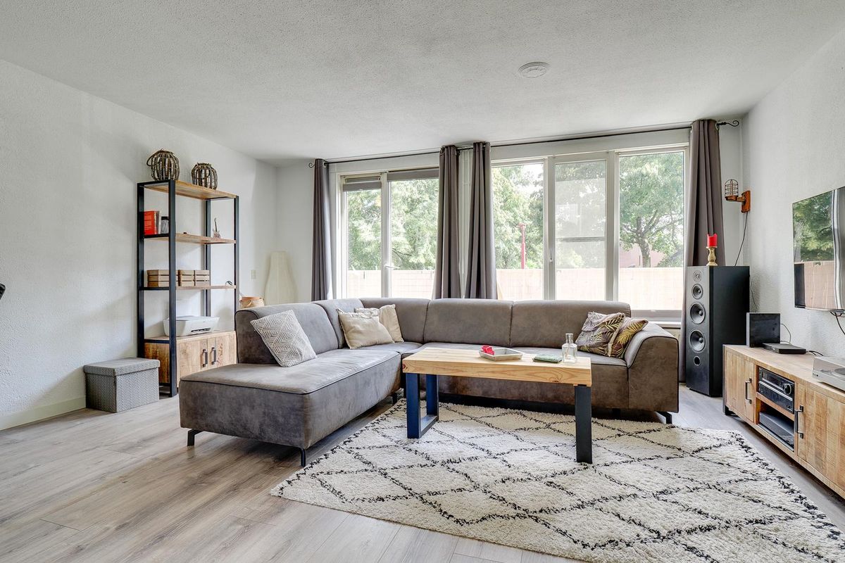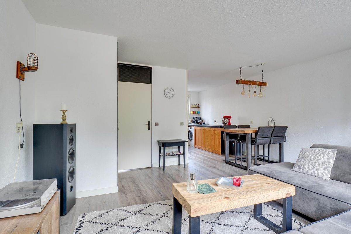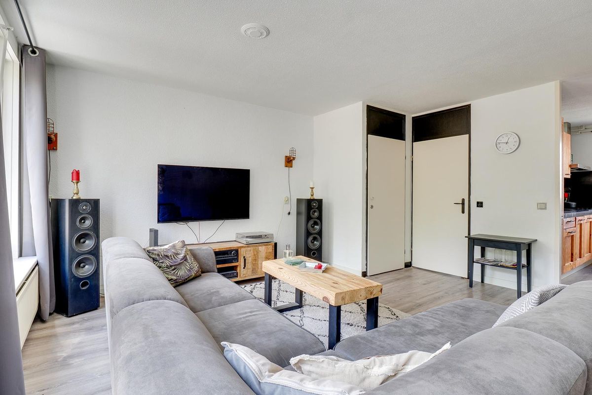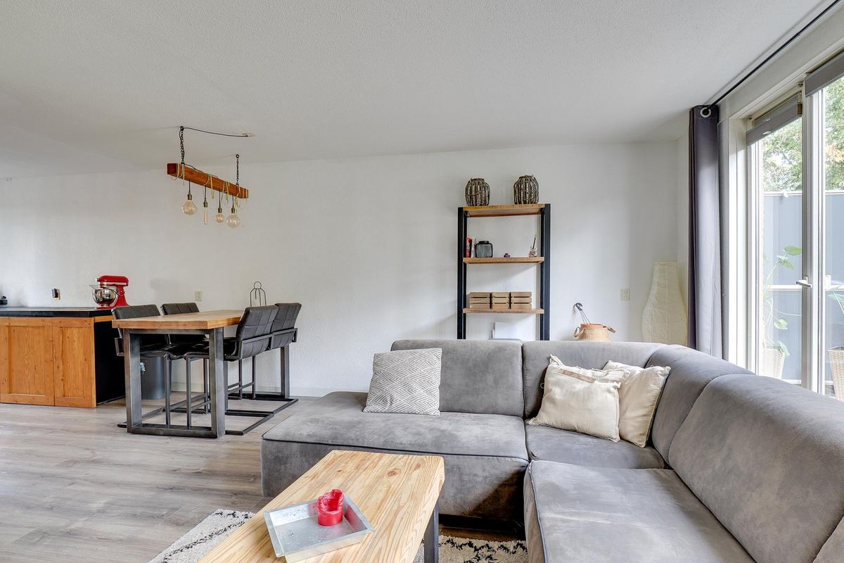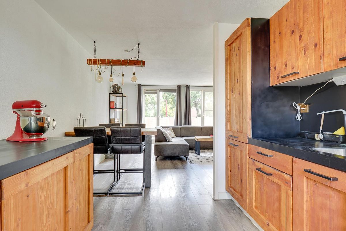 De entree geeft toegang tot de lichte woonkamer met open keuken. De woonkamer van ca. 19 m² heeft grote raampartijen die zorgen voor veel natuurlijk licht. De moderne keuken (ca. 9 m²) is vernieuwd in 2020 en voorzien van inbouwapparatuur.