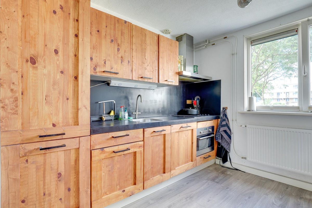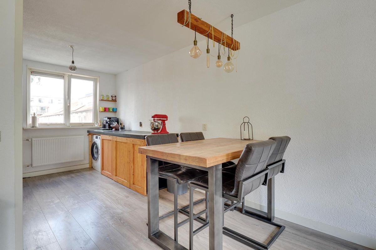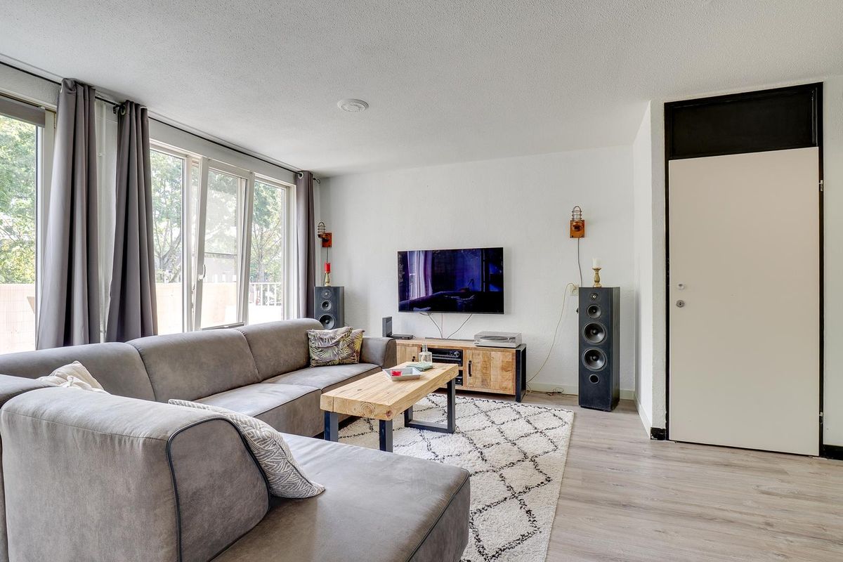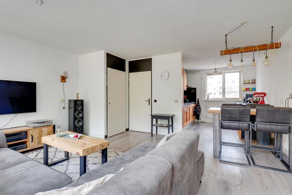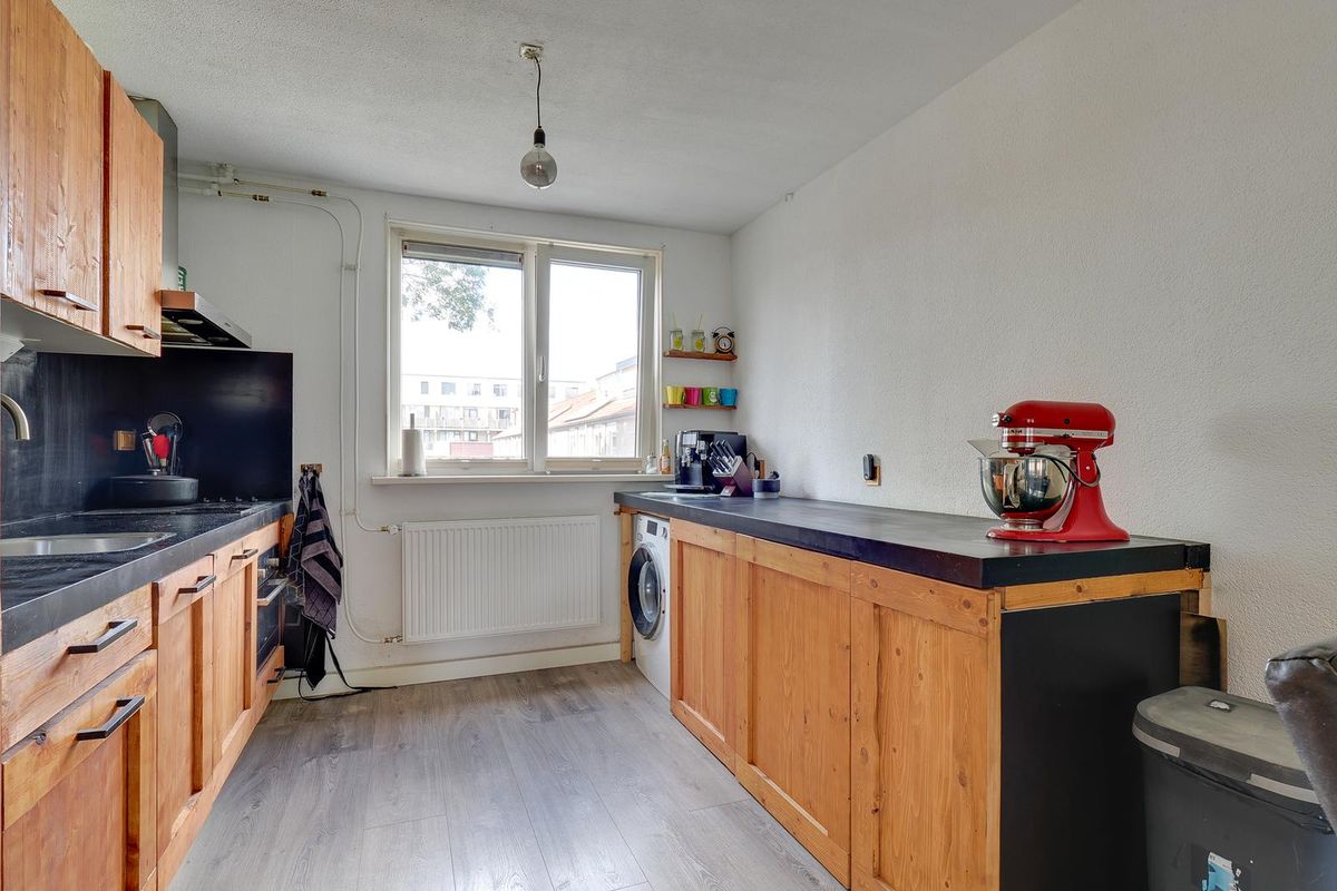 De entree geeft toegang tot de lichte woonkamer met open keuken. De woonkamer van ca. 19 m² heeft grote raampartijen die zorgen voor veel natuurlijk licht. De moderne keuken (ca. 9 m²) is vernieuwd in 2020 en voorzien van inbouwapparatuur.