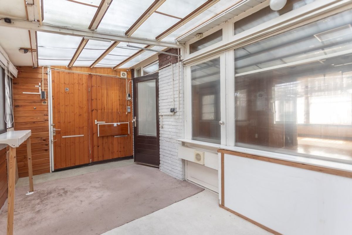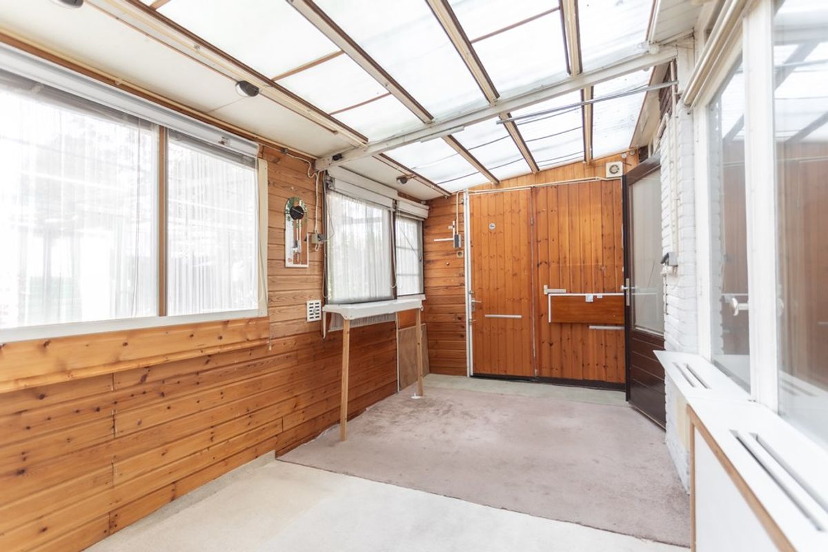 Achterin de woonkamer, aan de rechterkant, bevindt zich de keuken. Vanuit de keuken stap je zó de serre in. Via de serre heb je toegang tot de achtertuin handig voor buiten ontbijten, borrelen of om even snel je kruidentuin in te lopen.
