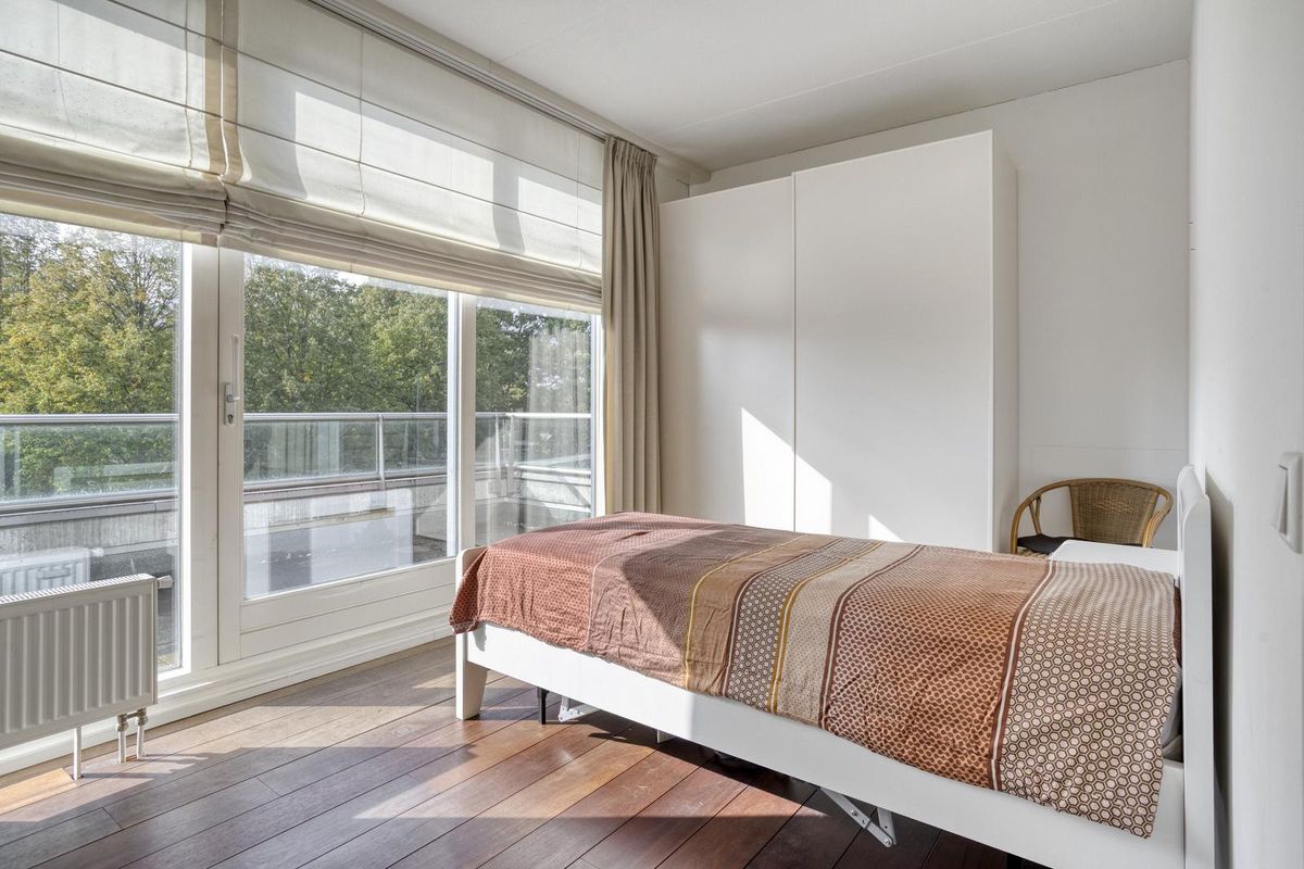 De royale master bedroom is mooi afgewerkt en beschikt over airco en een schuifpui naar het dakterras.