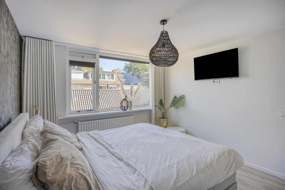 Via een vaste trap kom je op de zolder met veel bergruimte. Vanaf de overloop bereik je de cv-ruimte en een ruime vierde slaapkamer met kunststof dakkapel aan de achterzijde. Deze slaapkamer biedt volop daglicht en praktische opbergruimte achter de knieschotten met schuifdeurtjes. Extra bergruimte vind je op de vliering in de nok, bereikbaar via een vlizotrap.