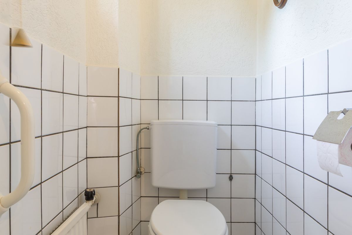 Volledig betegelde badkamer (3.72*1.94m) met douche, vaste wastafel en een 2e toilet.