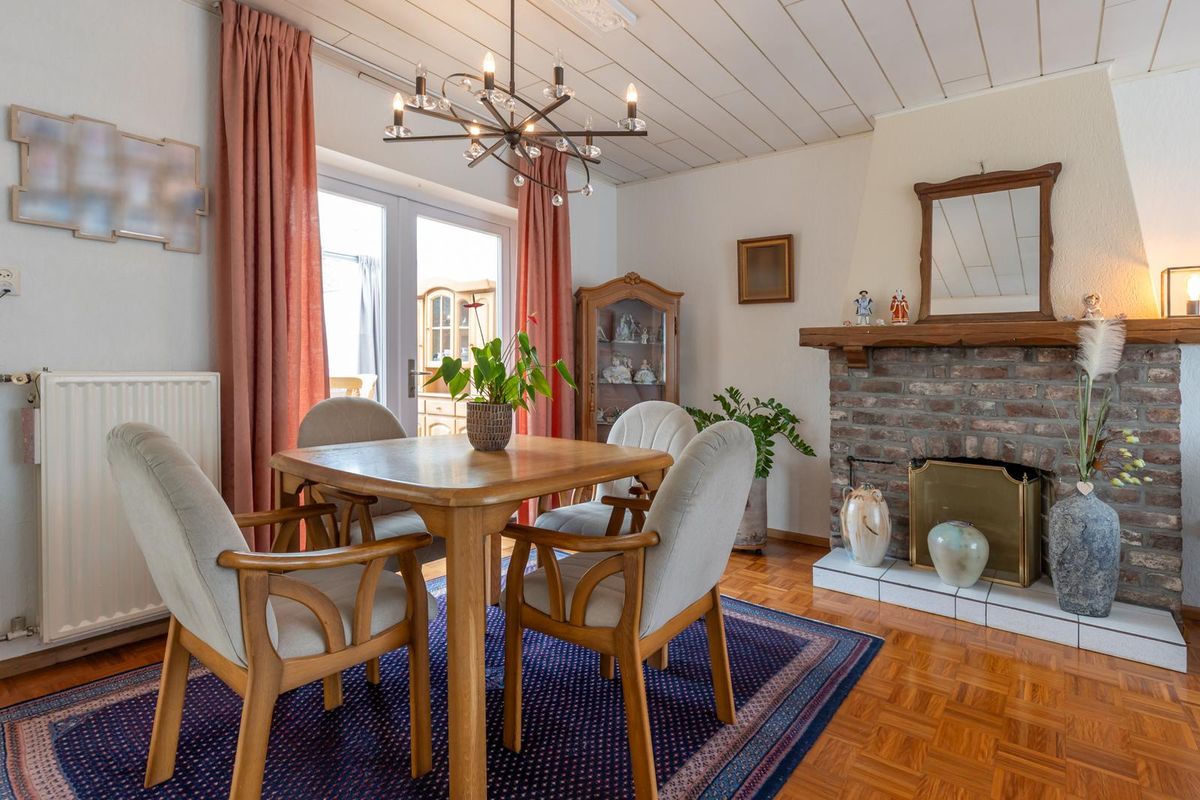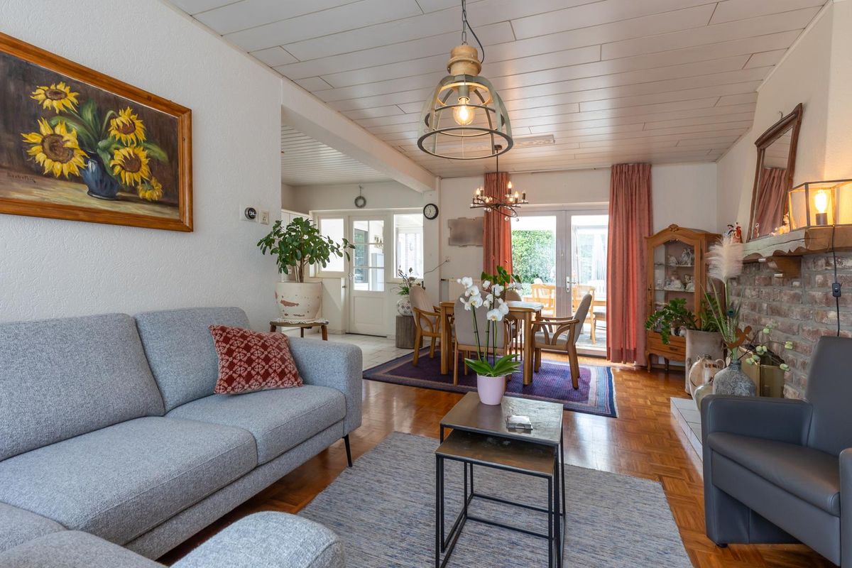Sfeervolle doorzon woonkamer (6.57*3.67m) met fraaie mozaïek parketvloer en openslaande deuren naar de tuinkamer.
