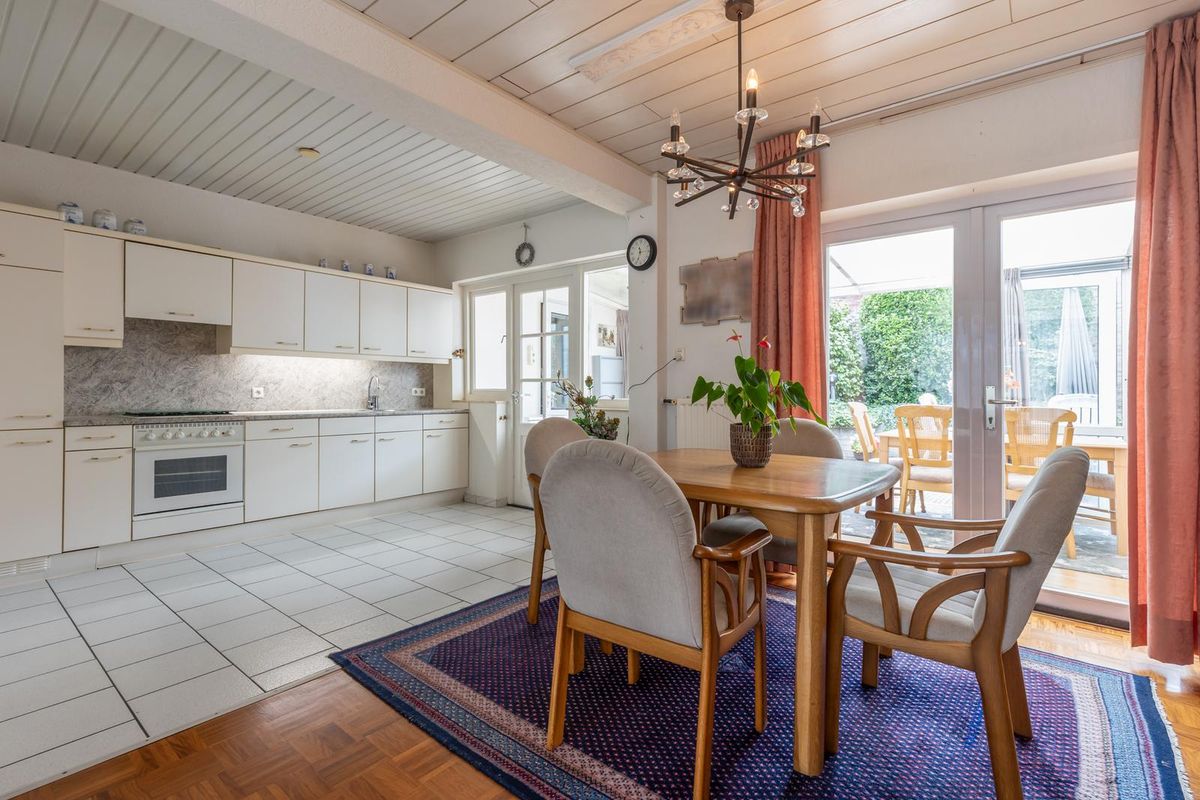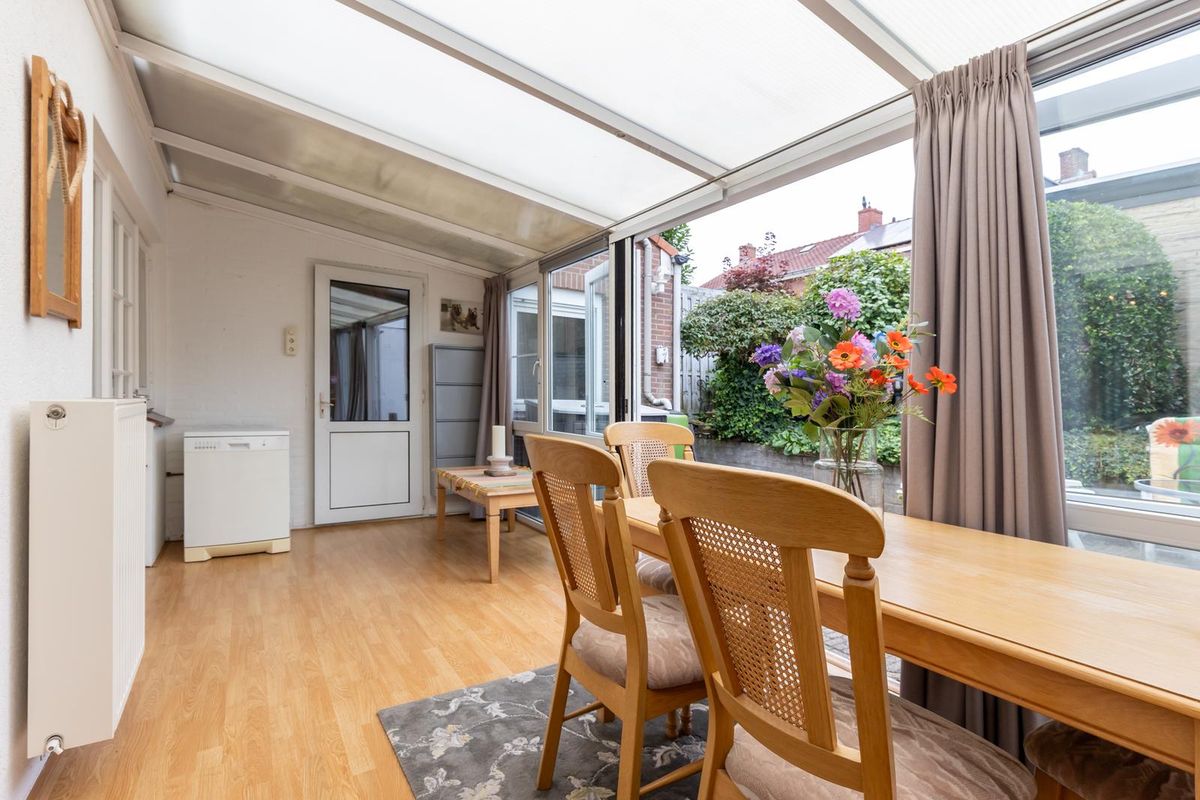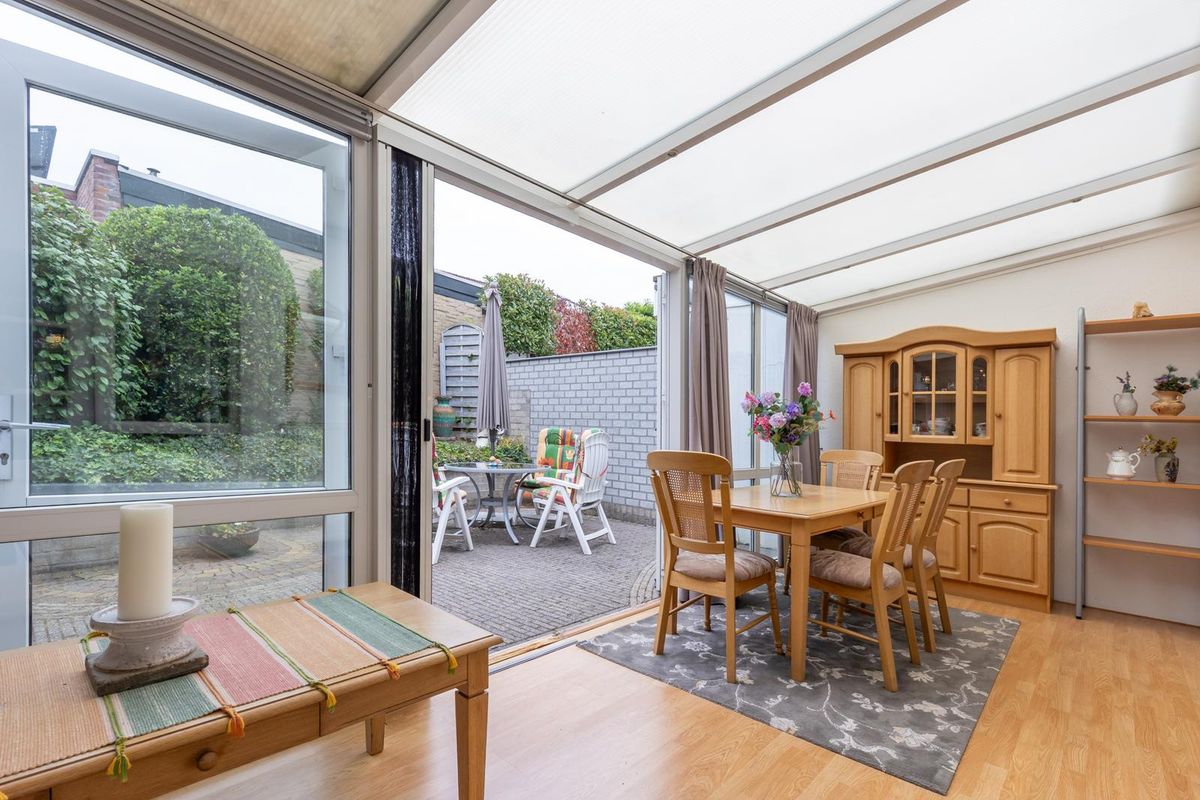 De tuinkamer heeft openslaande deuren naar de tuin en grote ramen zodat men mooi zicht heeft op de tuin.
