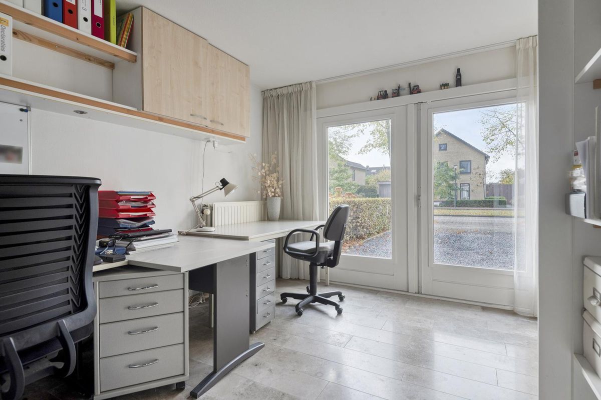 In de praktische bijkeuken vind je de aansluitingen voor wasapparatuur. Vanuit hier én vanuit de hal is de kantoor- of speelkamer bereikbaar — ideaal voor wie thuis werkt of een rustige plek zoekt voor studie of hobby.