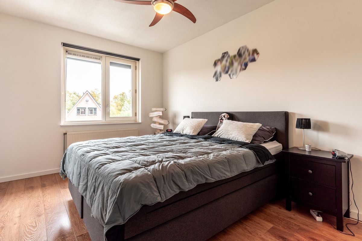 Op de tweede verdieping vindt u een ruime overloop met aansluiting voor wasmachine en droger, plus voldoende ruimte voor een werkplek aan huis. Daarnaast bevindt zich hier de vierde slaapkamer, die opvallend ruim is.