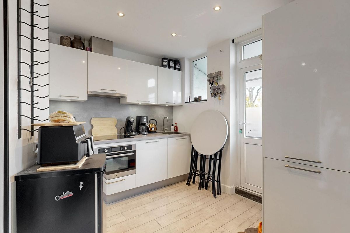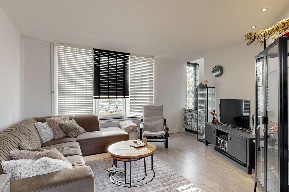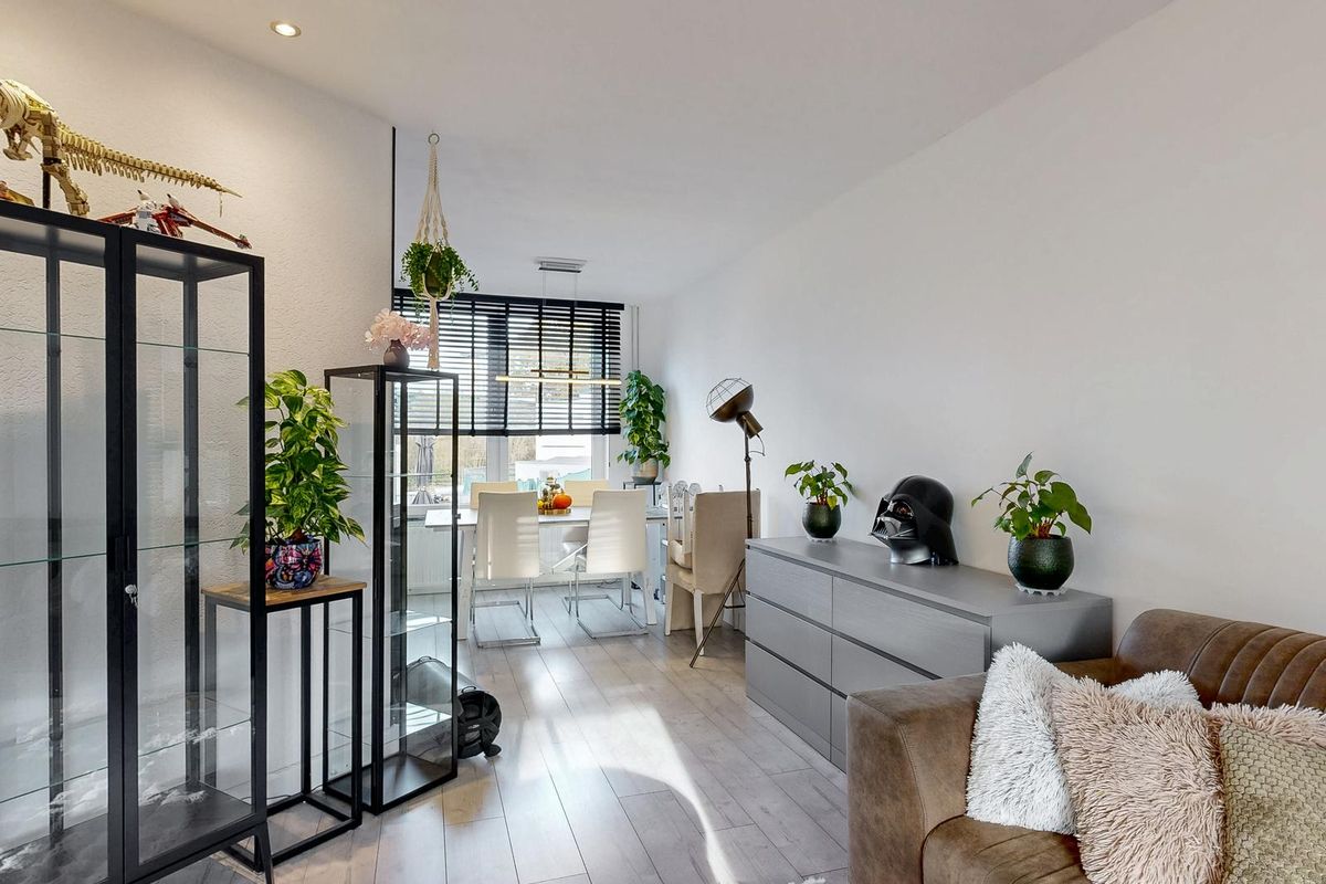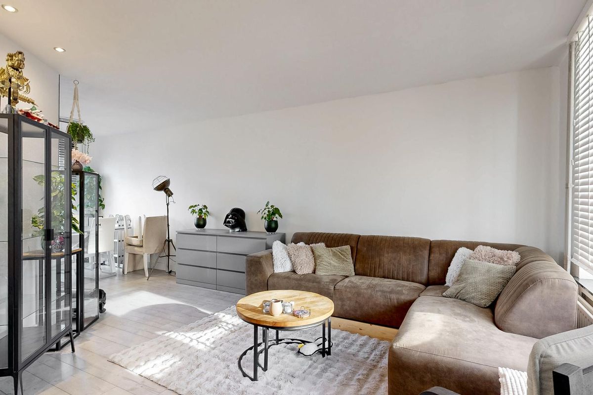 De woonkamer is breed, licht en groter dan je bij een maisonette verwacht.