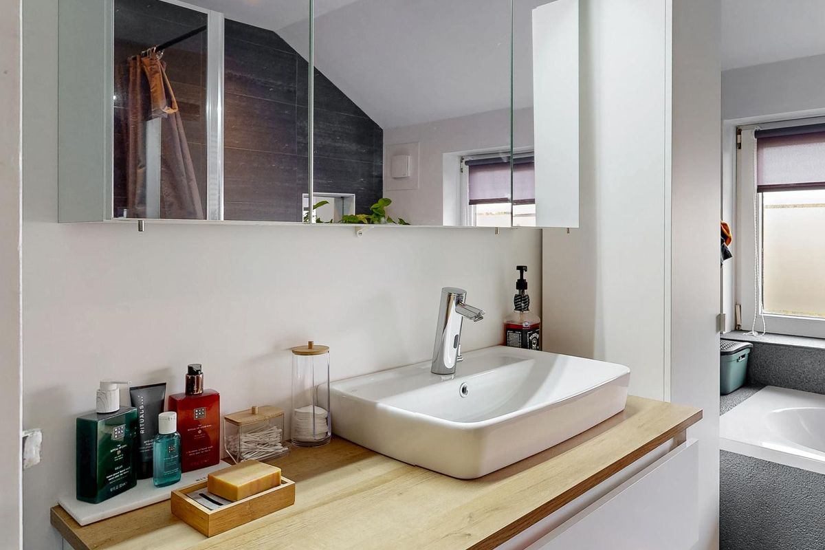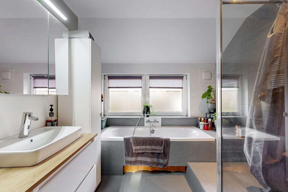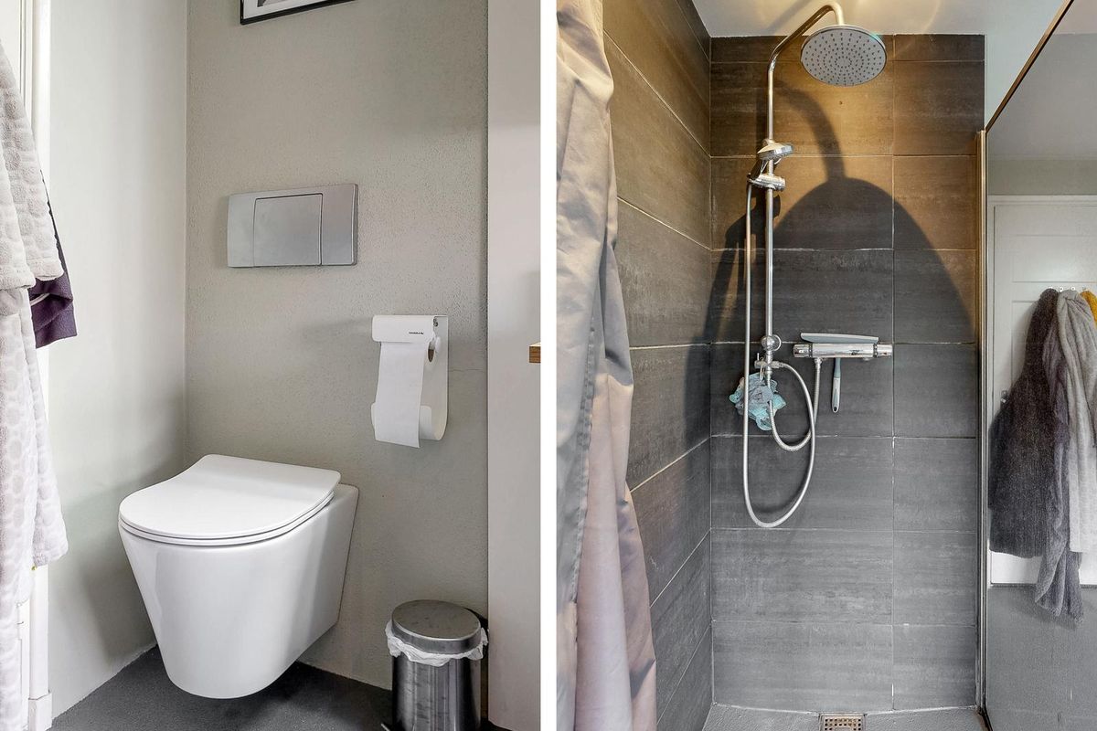 Badkamer met ligbad, douche, wastafel, extra toilet en wasmachine-aansluiting