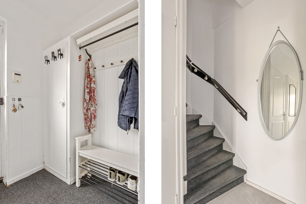 Entree via de voortuin met ruimte voor het parkeren van 2 auto's op eigen terrein; tochtportaal met kapstok en meterkast; hal met bergkast onder trap en modern toilet met hangend closet en fonteintje. De woonkamer is voorzien van triple glas aan de voorzijde waardoor een fijne, lichte en stille ruimte ontstaat die doorloopt in de royale woonkeuken. Deze woonkeuken heeft een aanbouw aan de achterzijde met dubbele deuren die toegang bieden tot de achtertuin. De moderne en goed onderhouden keuken met composiet blad is voorzien van diverse inbouwapparatuur en de ruimte leent zich voor een lange eettafel. Op de vloer ligt PVC, de muren zijn glad gestuct en het plafond is voorzien van spotjes. De achtertuin op het oosten is onderhoudsarm en voorzien van een stenen schuur met achterom en houten overkapping.