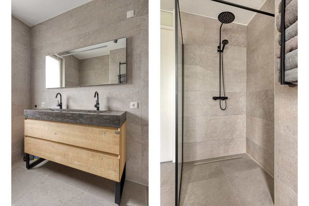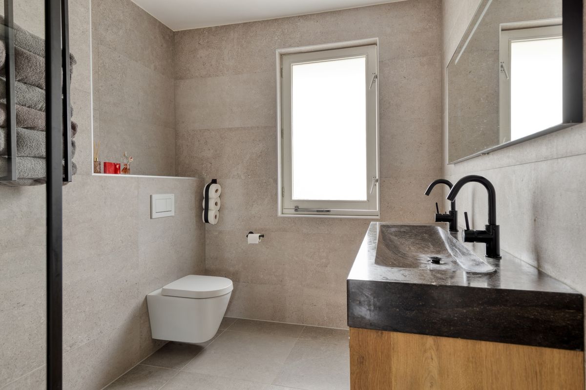 Op de eerste verdieping vind je een ruime overloop die toegang geeft tot drie slaapkamers. Deze kamers zijn stuk voor stuk volwaardig en goed in te delen, perfect voor kinderen, gasten of als werkruimte. De badkamer is modern en praktisch ingericht met een inloopdouche, dubbele kraan op de wastafel en toilet.