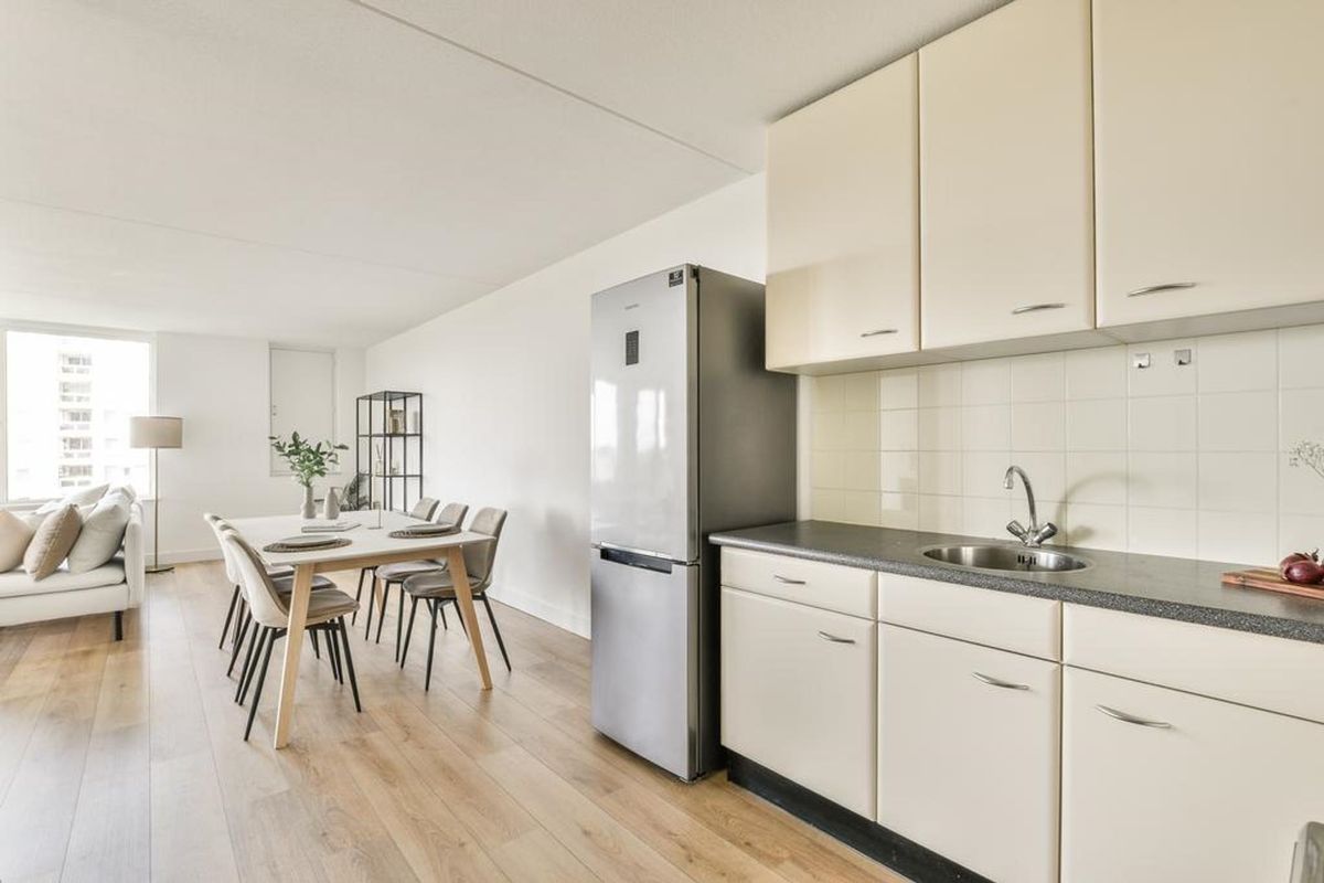 This spacious apartment complex is located in the Diemen-Noord district and borders the Amsterdam-Rhine Canal. The apartment on the ninth floor is accessible via stairs and elevator via the joint entrance. All rooms are accessible from the entrance/hall of the apartment. The living room is very light thanks to the large windows and offers access to the spacious balcony and the open kitchen.