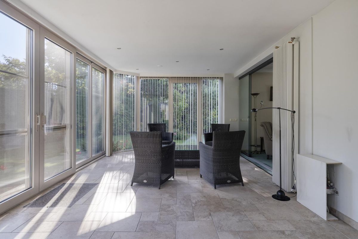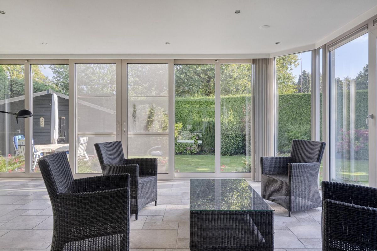De woonkamer is indrukwekkend ruim en dankzij de serre stroomt het daglicht royaal naar binnen. De aanwezige houtkachel zorgt voor een gezellige sfeer tijdens de koudere maanden, terwijl de airco juist weer comfort biedt in de zomer. Er is voldoende ruimte voor een grote zithoek en extra meubels. De eetkamer bevindt zich in een aparte ruimte naast de hal, perfect voor lange diners aan een grote tafel. De keuken is modern, netjes en royaal opgezet. De stijlvolle zwarte kasten geven een luxe uitstraling en de inbouwapparatuur is van alle gemakken voorzien. Dankzij de vele ramen kook je hier letterlijk in het daglicht, een heerlijke plek om te zijn.