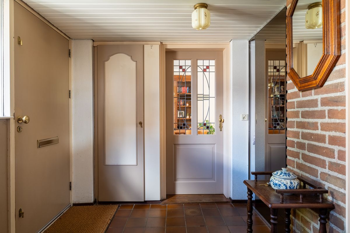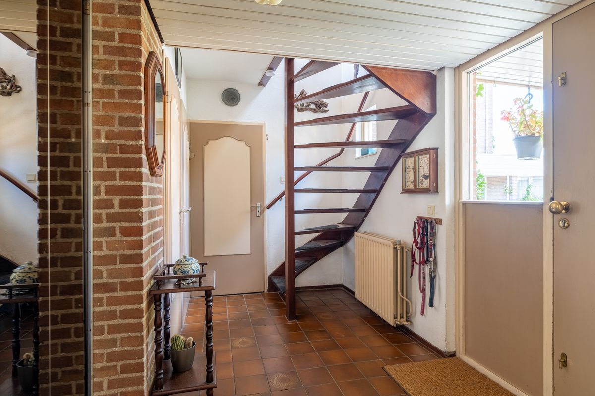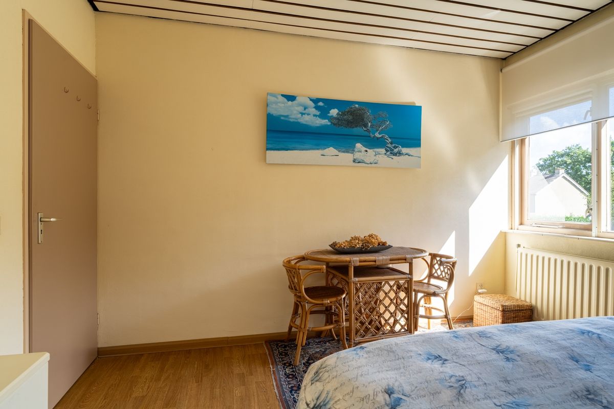 Naast het huis staat een ruime stenen garage met sectionaaldeur. Daarachter ligt nog een extra berging – ideaal voor fietsen, tuingereedschap of hobbyspullen. In de garage zijn ook de aansluitingen voor de wasmachine te vinden.