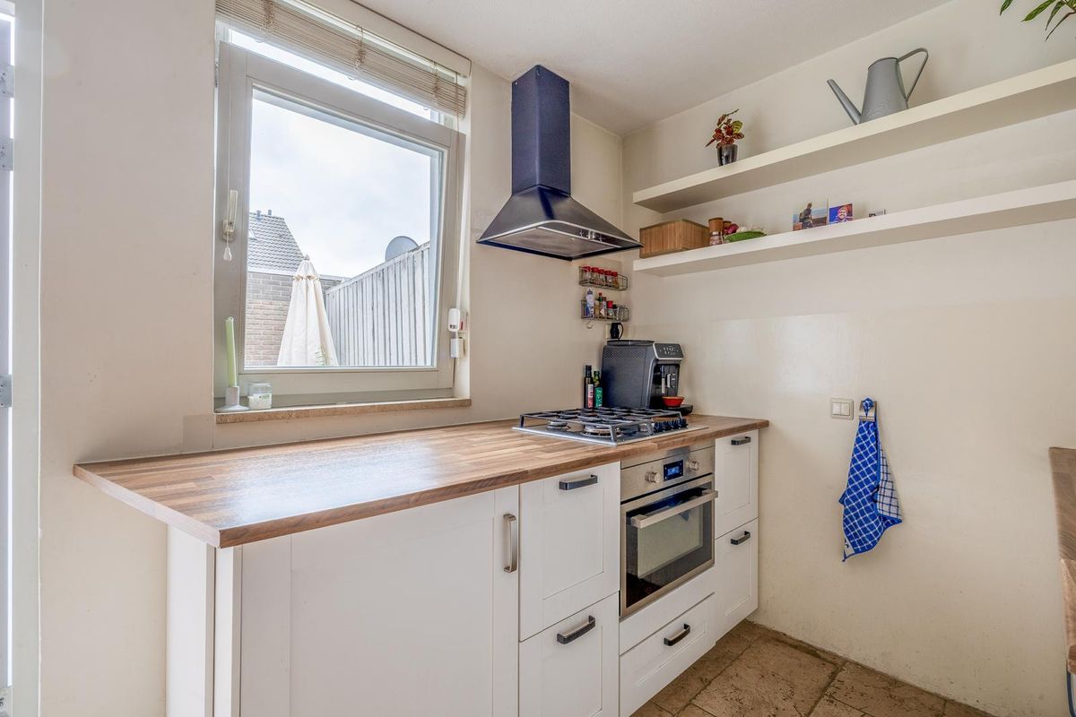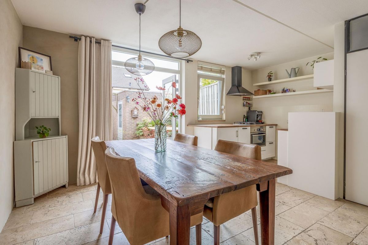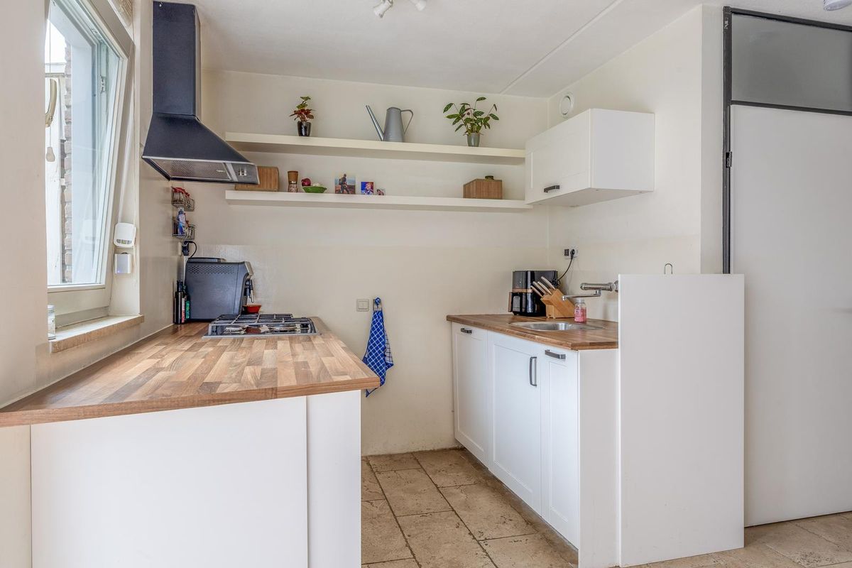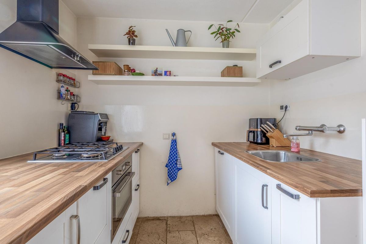 De open keuken aan de tuinzijde is uitgerust met diverse inbouwapparatuur (waaronder een koelkast uit 2021, combi-oven/magnetron, gaskookplaat, vaatwasser en apothekerskast) en biedt via openslaande deuren direct toegang tot de