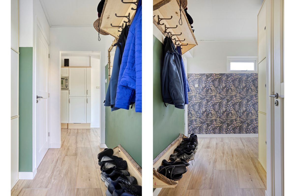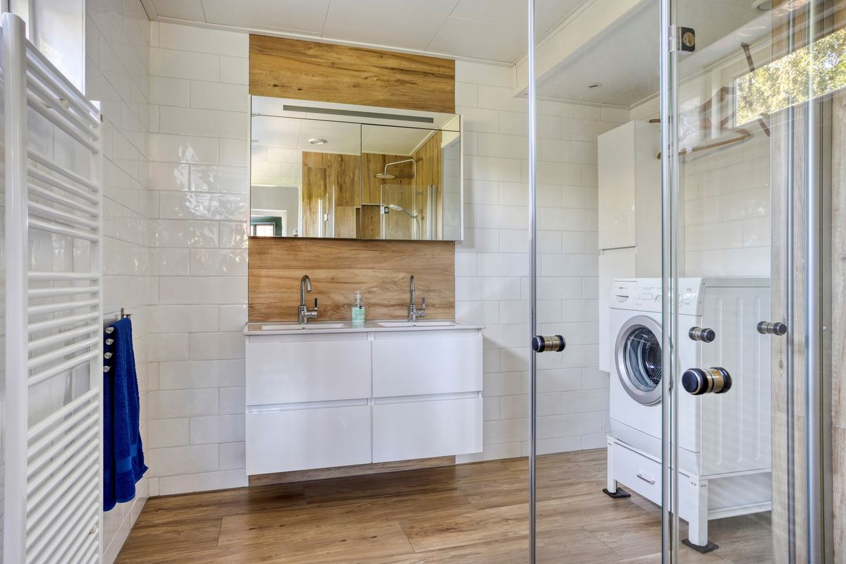 Entree/ achterhal/ bijkeuken/ wandtoilet met fontein/ badkamer voorzien van inloopdouche, wasmachineaansluiting, 2 vaste wastafels met onderbouw, elektrische designradiator/ woonkeuken met schuifpui naar terras/keuken voorzien van 2 spoelbakken, 4-pits inductie kookplaat (2023), vlakschermafzuigkap, koelkast, combimagnetron, vriezer en een hotfill boiler (direct heet water)/ woonkamer voorzien van airco/ slaapkamer/ kelder (circa 1,20 mtr diep)/ provisiekast/ entree voor/ trapopgang/ buiten aan de achterkant van de woning een technische ruimte.