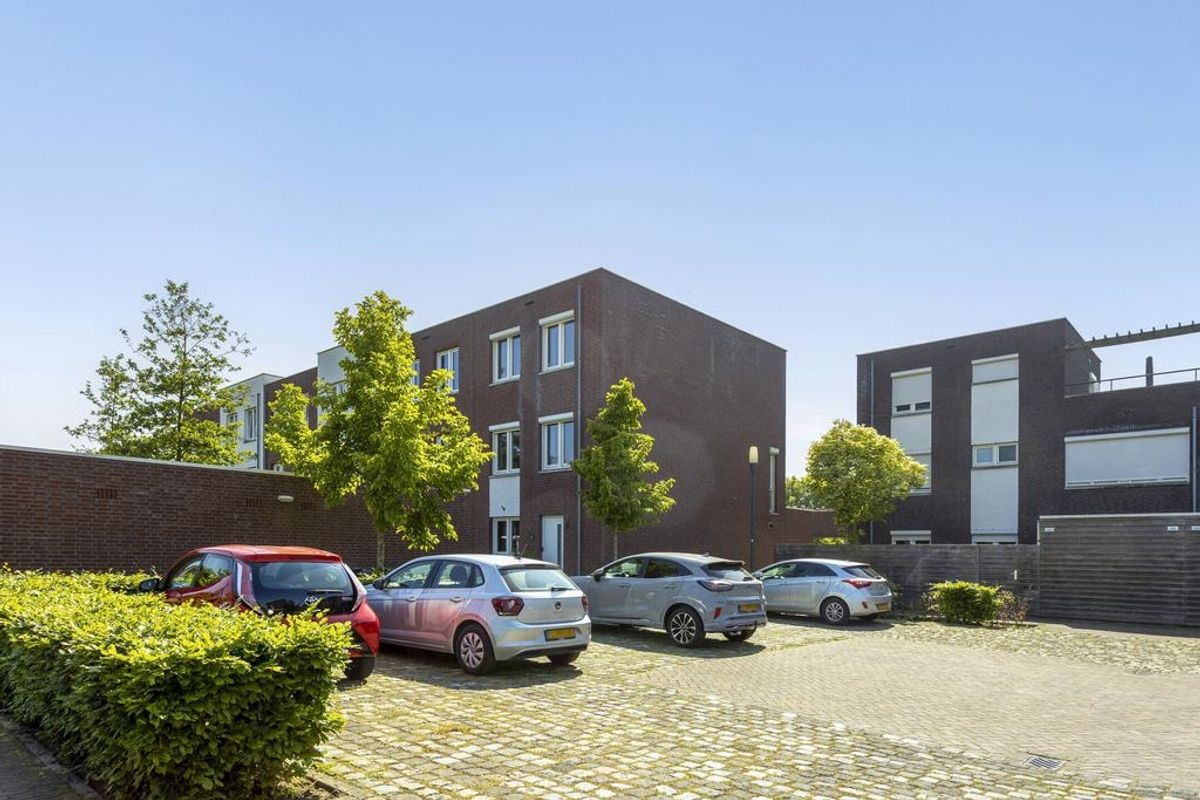 De achtertuin is compact maar praktisch ingericht, onderhoudsvriendelijk en heerlijk zonnig. Er is een buitenkraan, verlichting en achterin een houten berging met achterom naar de parkeerplaatsen.