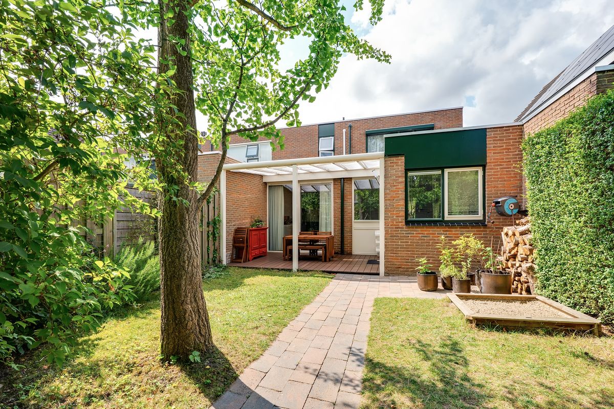 De fraai aangelegde achtertuin is gelegen op het zuidoosten en is voorzien van bestrating, vlonders, graszode en diverse beplanting. Deze tuin is de perfecte plek om te genieten van het buitenleven, of je nu wilt barbecueën met vrienden, een trampoline wilt neerzetten voor de kinderen of een boek wilt lezen in alle rust. De overkapping met screens zorgt ervoor dat je de vrijheid hebt om in de zon te zitten of de schaduw op te zoeken. Tevens is de vrijstaande stenen garage te bereiken en is er een achterom aanwezig.