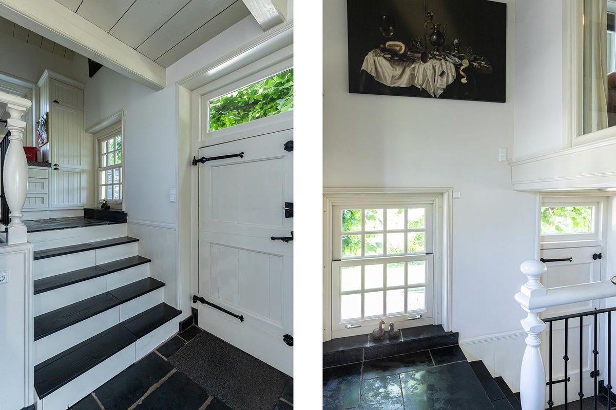 Bij binnenkomst sta je in de voormalige stal: een grote, lichte ruimte met klinkerbestrating en indrukwekkende houten balken. Deze ruimte ademt historie — zo zijn er nog onderdelen zichtbaar die vroeger bij het kaasmaken werden gebruikt, bevestigd aan een plafondbalk. Een deel van deze ruimte is grondig gerenoveerd en voorzien van acht nieuwe grote stalramen van zware kwaliteit hout, uitgerust met dubbele beglazing in kiep-/kanteluitvoering en voorzien van sloten. Deze veelzijdige ruimte biedt talloze mogelijkheden, van ontvangsthal of kantoor aan huis tot atelier of leefruimte.