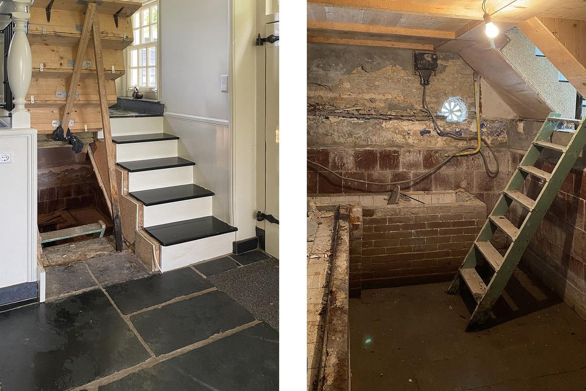 Op de begane grond bevinden zich twee slaapkamers, een functionele badkamer met douche en toilet, en een bijkeuken met nostalgisch lavet en aansluitingen voor wasapparatuur. Een verborgen toegang onder de trap leidt naar een kelder met originele pekelbaden — een unieke ruimte die lijkt alsof de tijd er stil heeft gestaan.